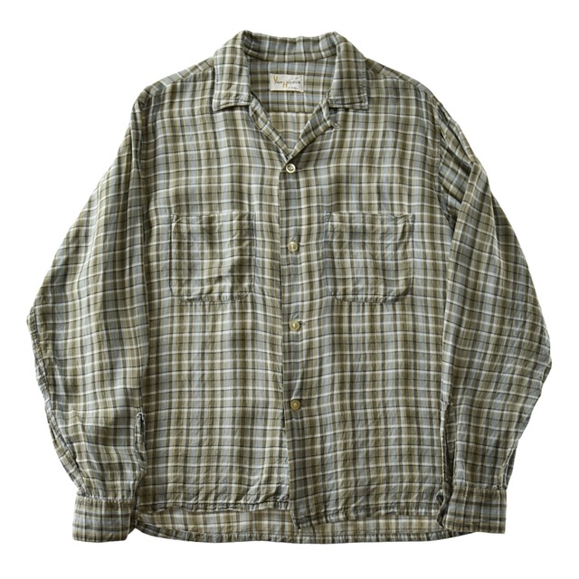 1960's "VAN HEUSEN" Vintage Open Collar Rayon Shirt / 60年代 ヴァンヒューゼン ヴィンテージ オープンカラー レーヨンシャツ 60s ビンテージ 開襟シャツ オンブレチェック