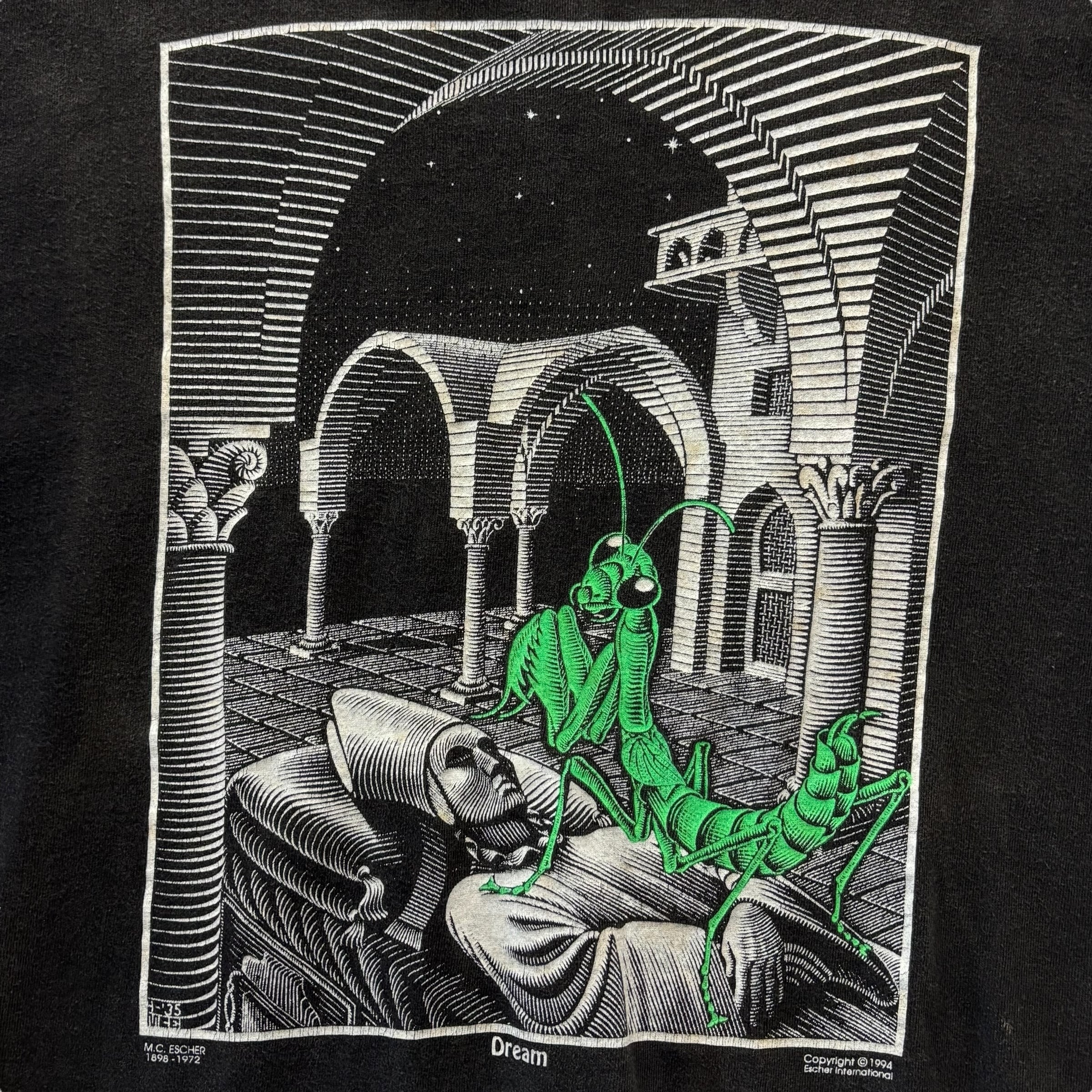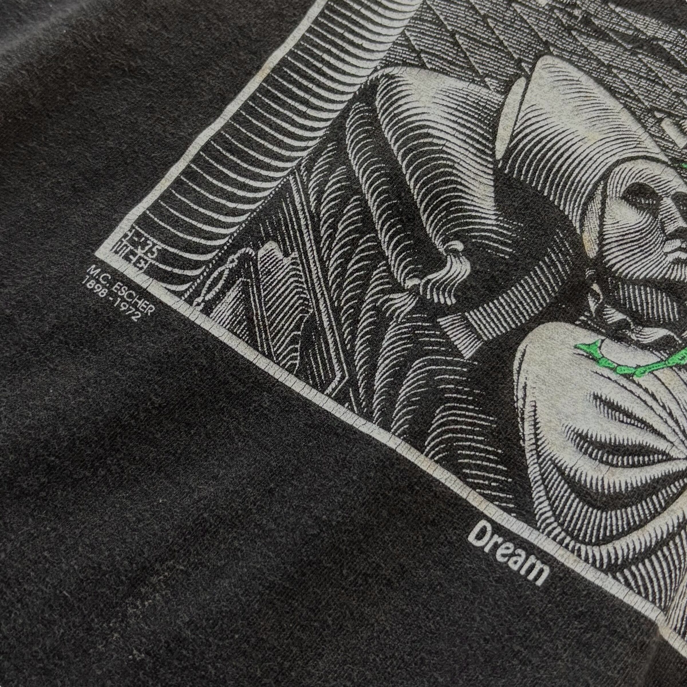 1990's "M.C.ESCHER" Dream S/S Art Printed T-shirt Made In USA XL (ANDAZIA) / 90年代 MCエッシャー アートプリントTシャツ USA製 アンダジア 90s ヴィンテージ ビンテージ シングルステッチ ドリーム 騙し絵