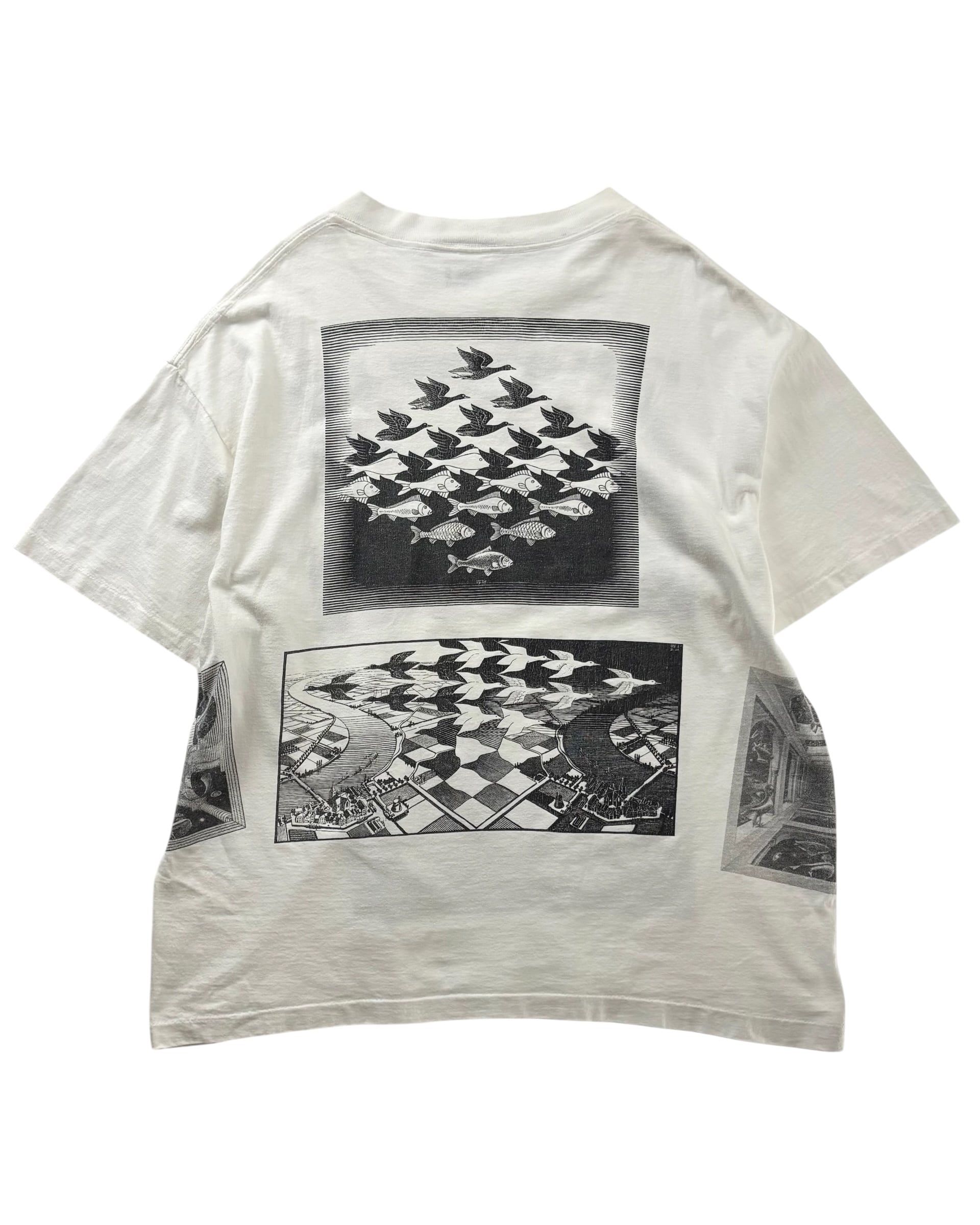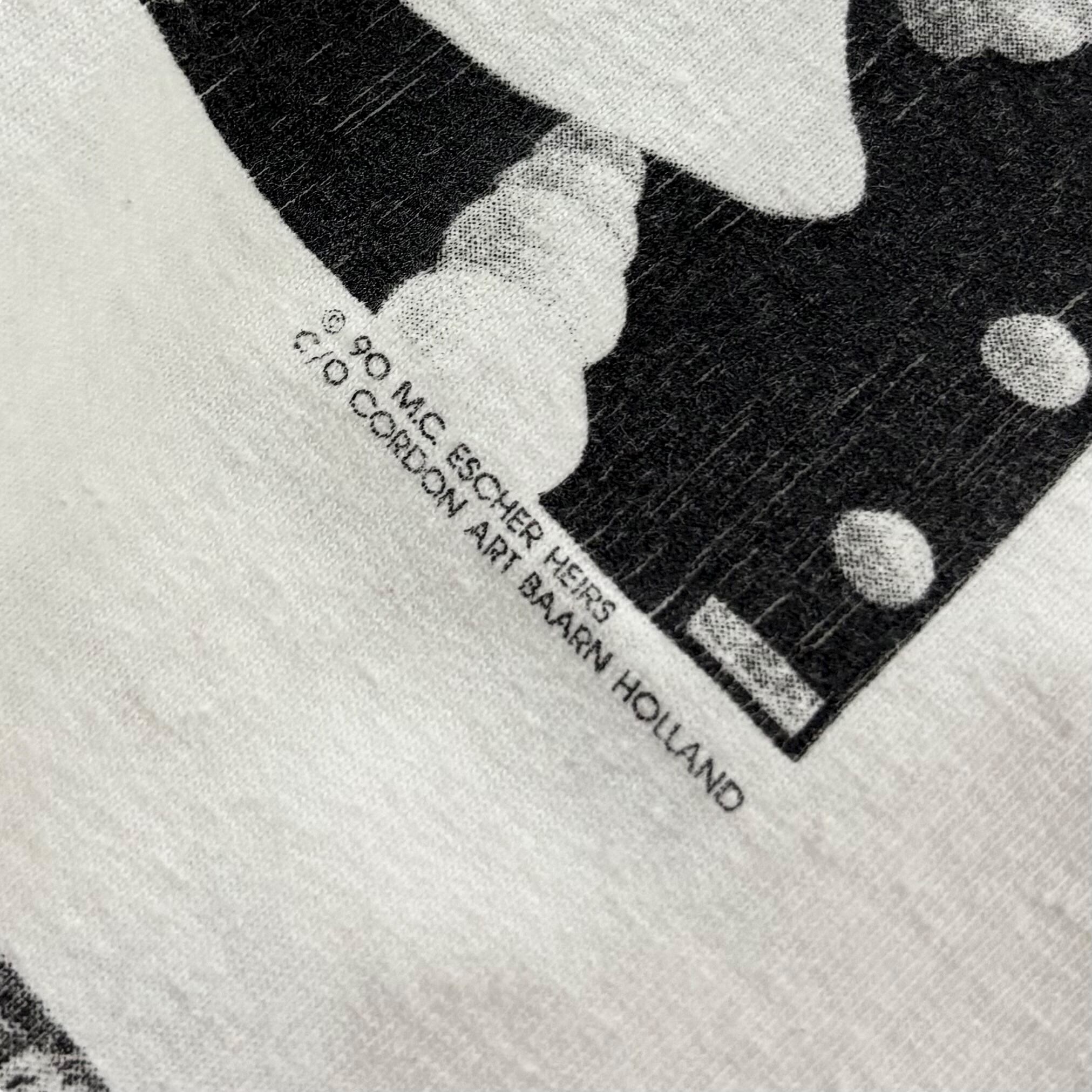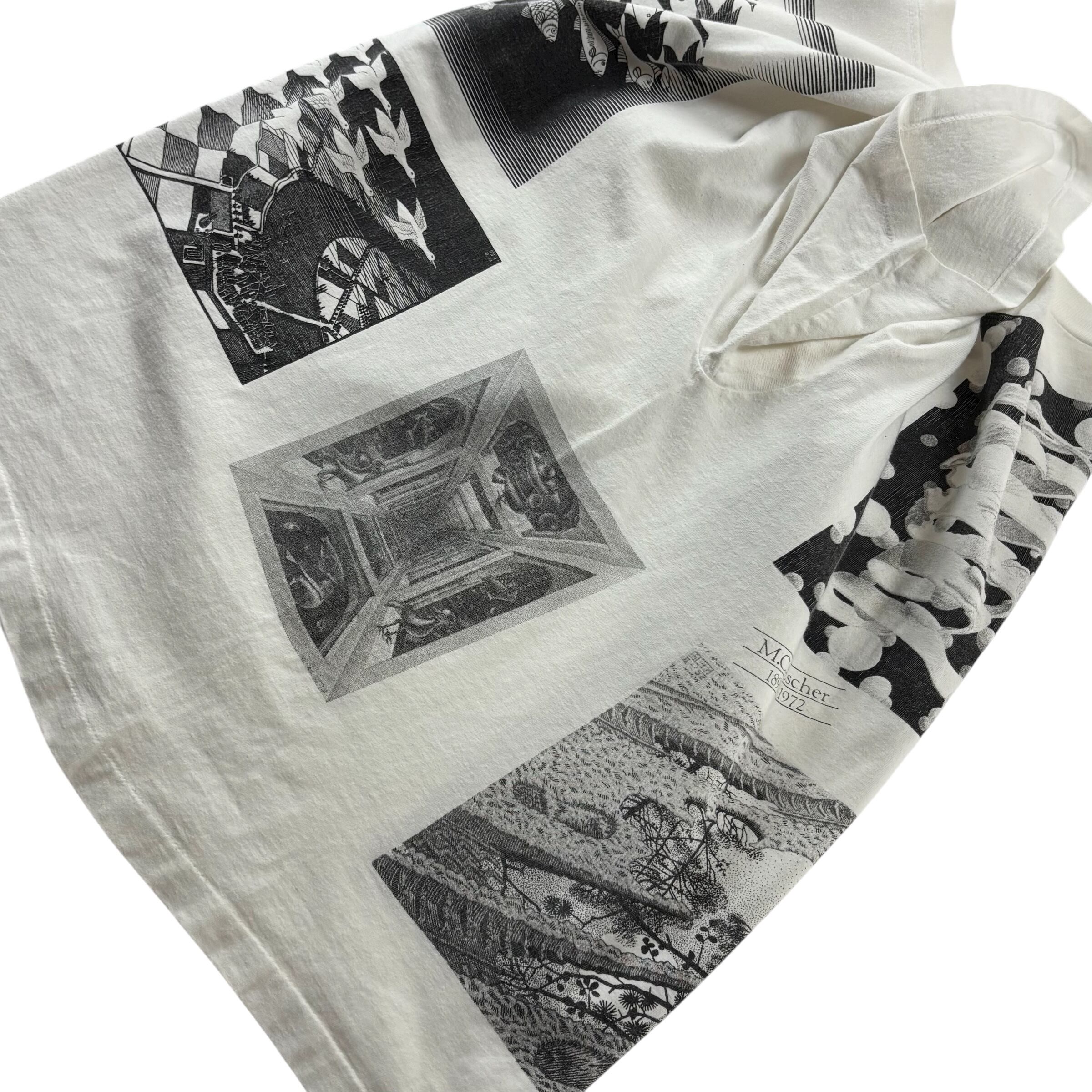 1990's "M.C.ESCHER" S/S Multi Printed T-shirt Made In USA XL (SOF Tee) / 90年代 MCエッシャー マルチプリントTシャツ USA製 ホワイト ソフティー 90s ヴィンテージ ビンテージ シングルステッチ 騙し絵 アートTシャツ