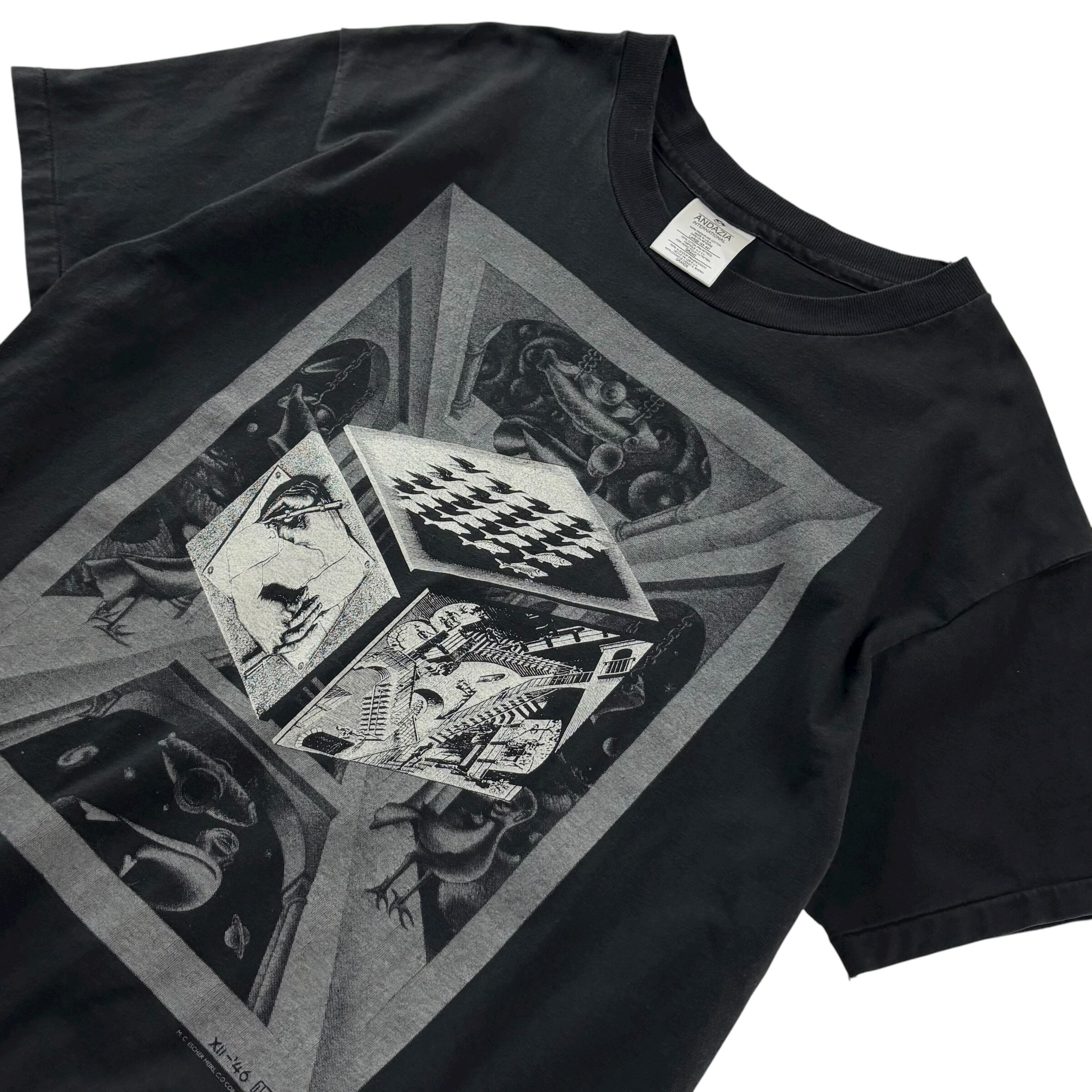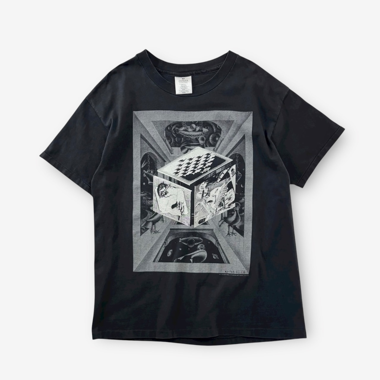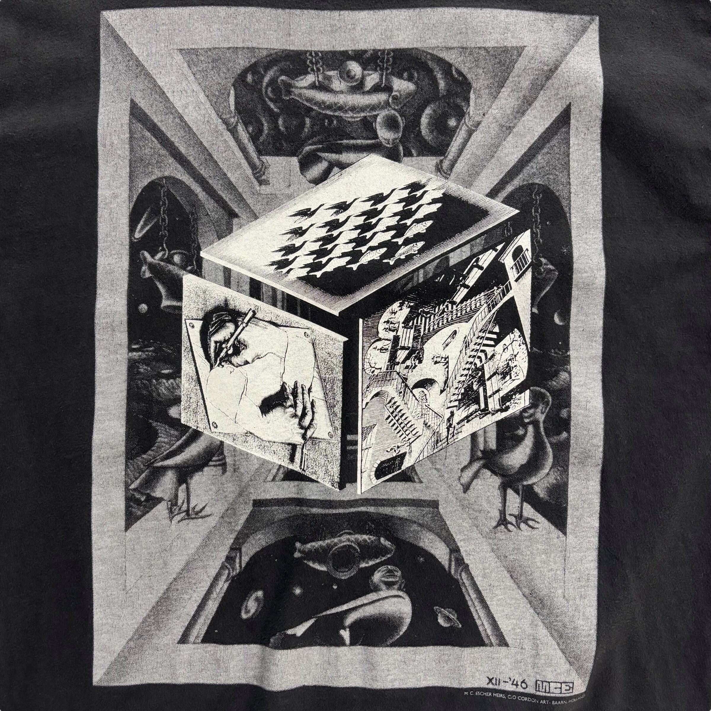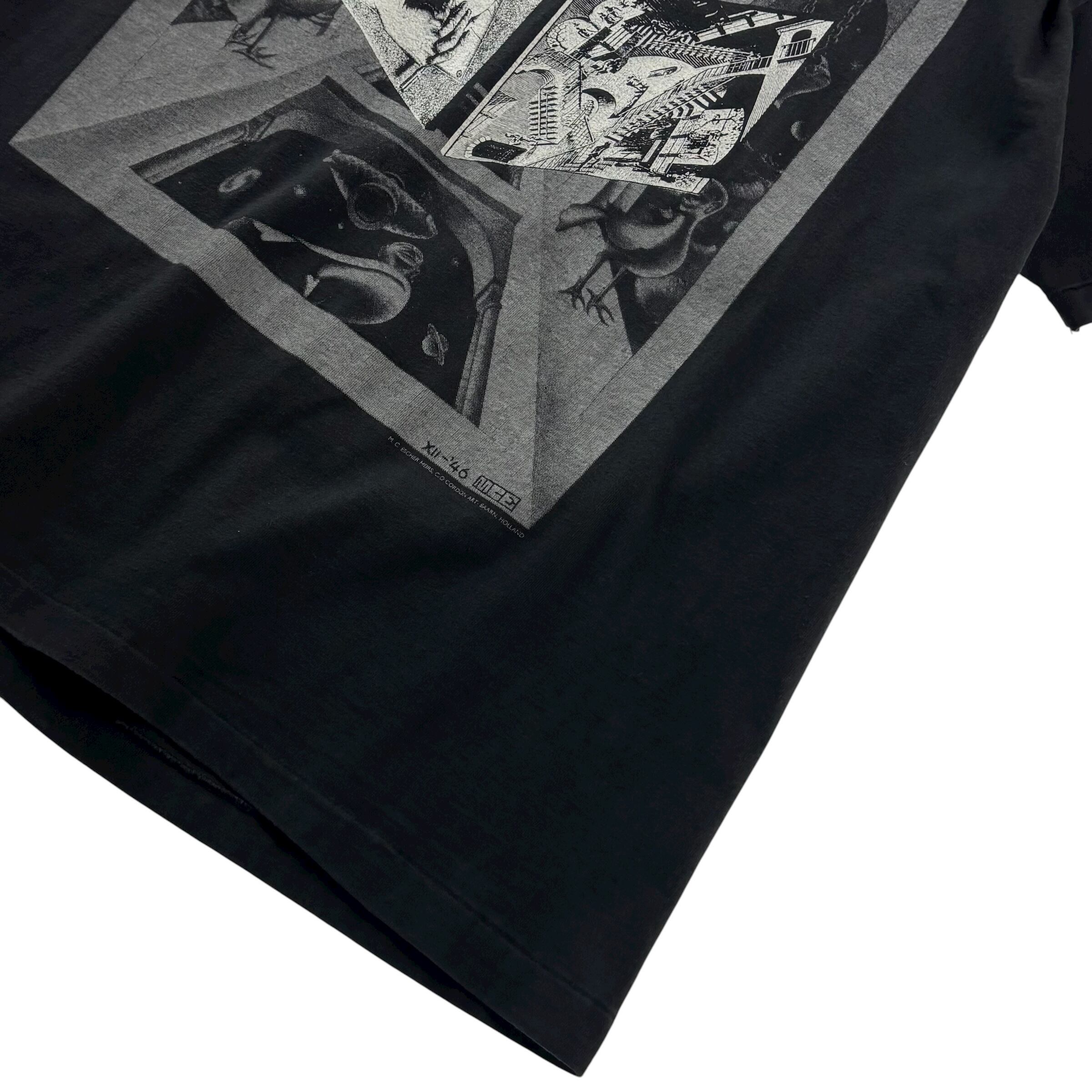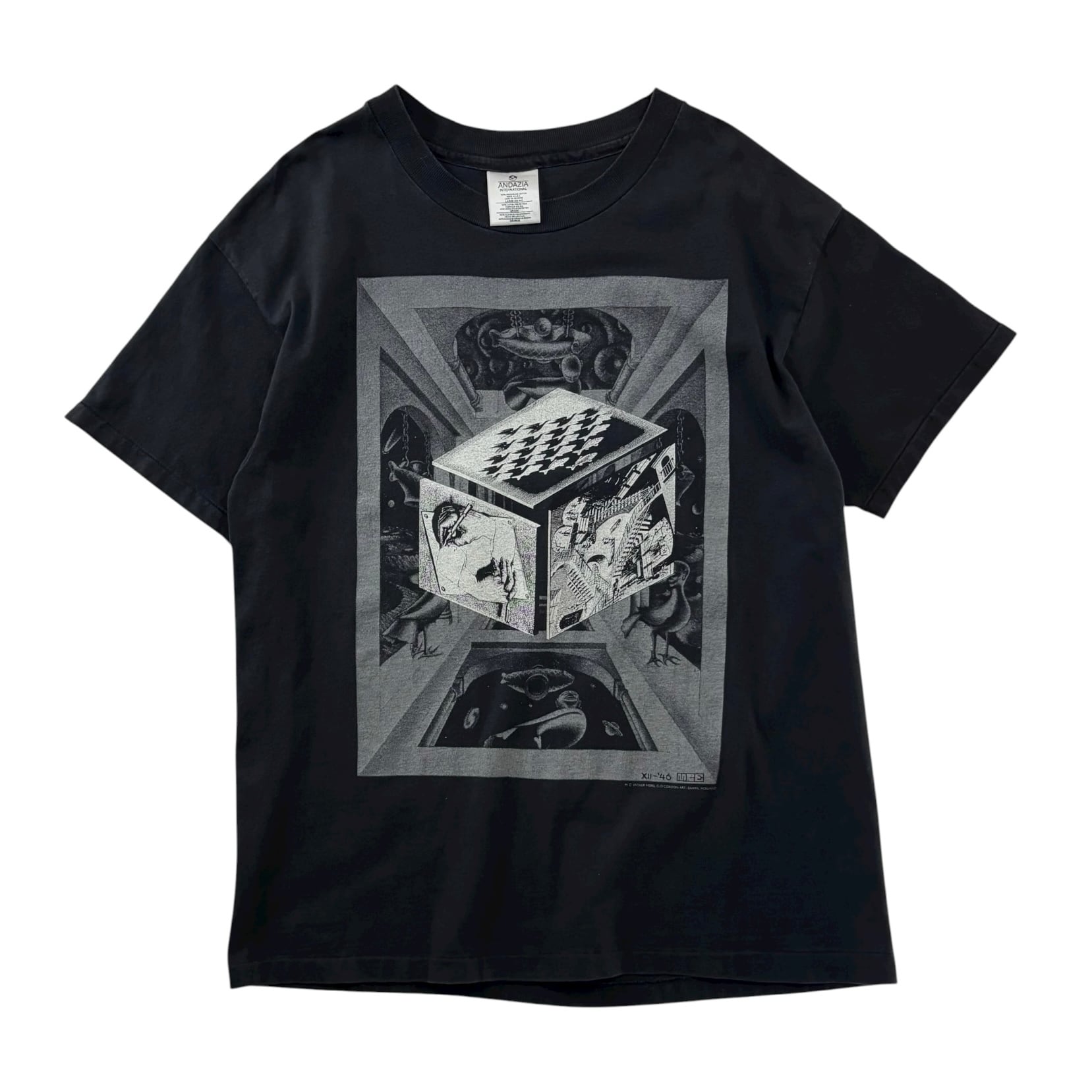1990's "M.C.ESCHER" S/S Art Printed T-shirt Made In USA L (ANDAZIA) / 90年代 MCエッシャー アートプリントTシャツ USA製 ブラック アンダジア 90s ヴィンテージ ビンテージ シングルステッチ 騙し絵