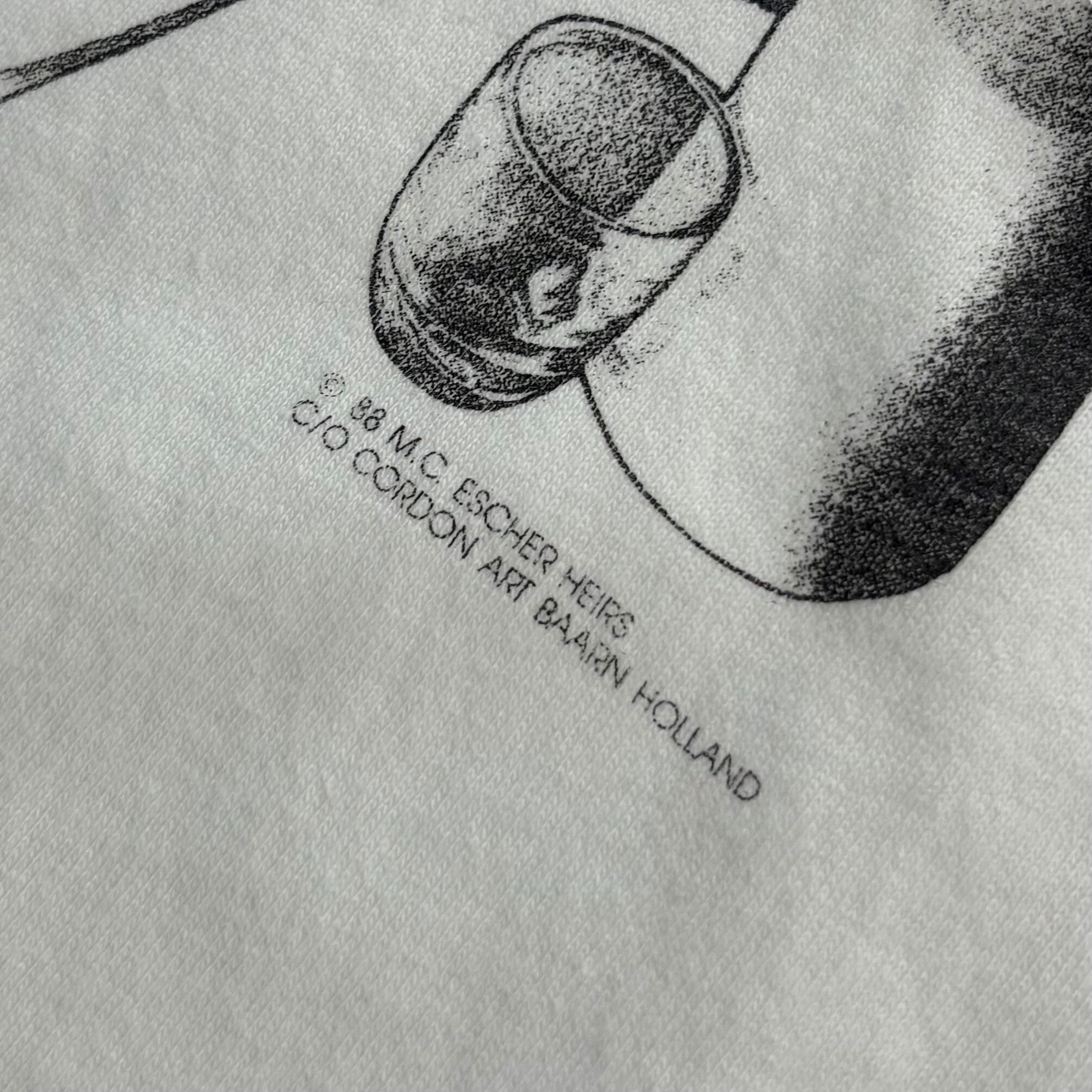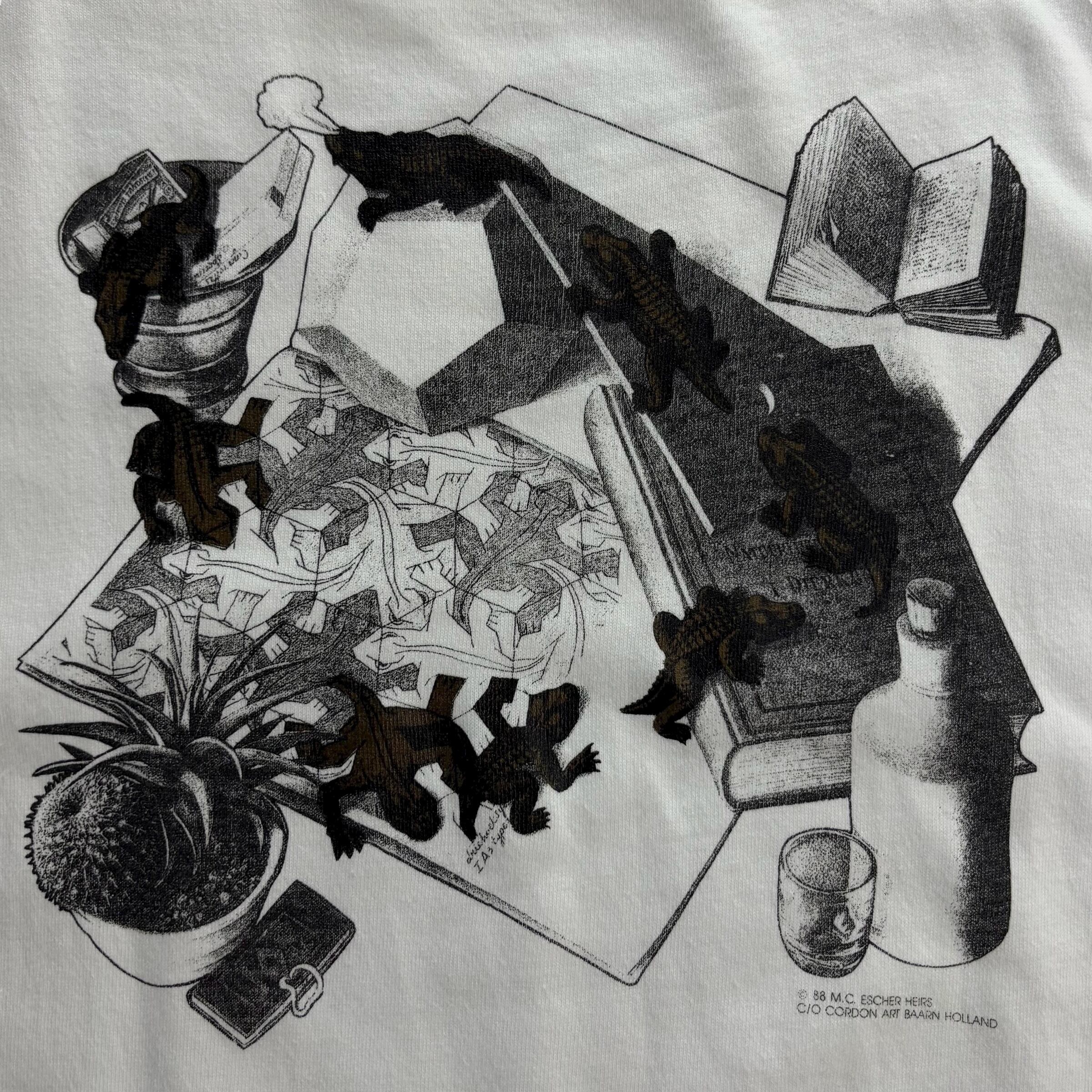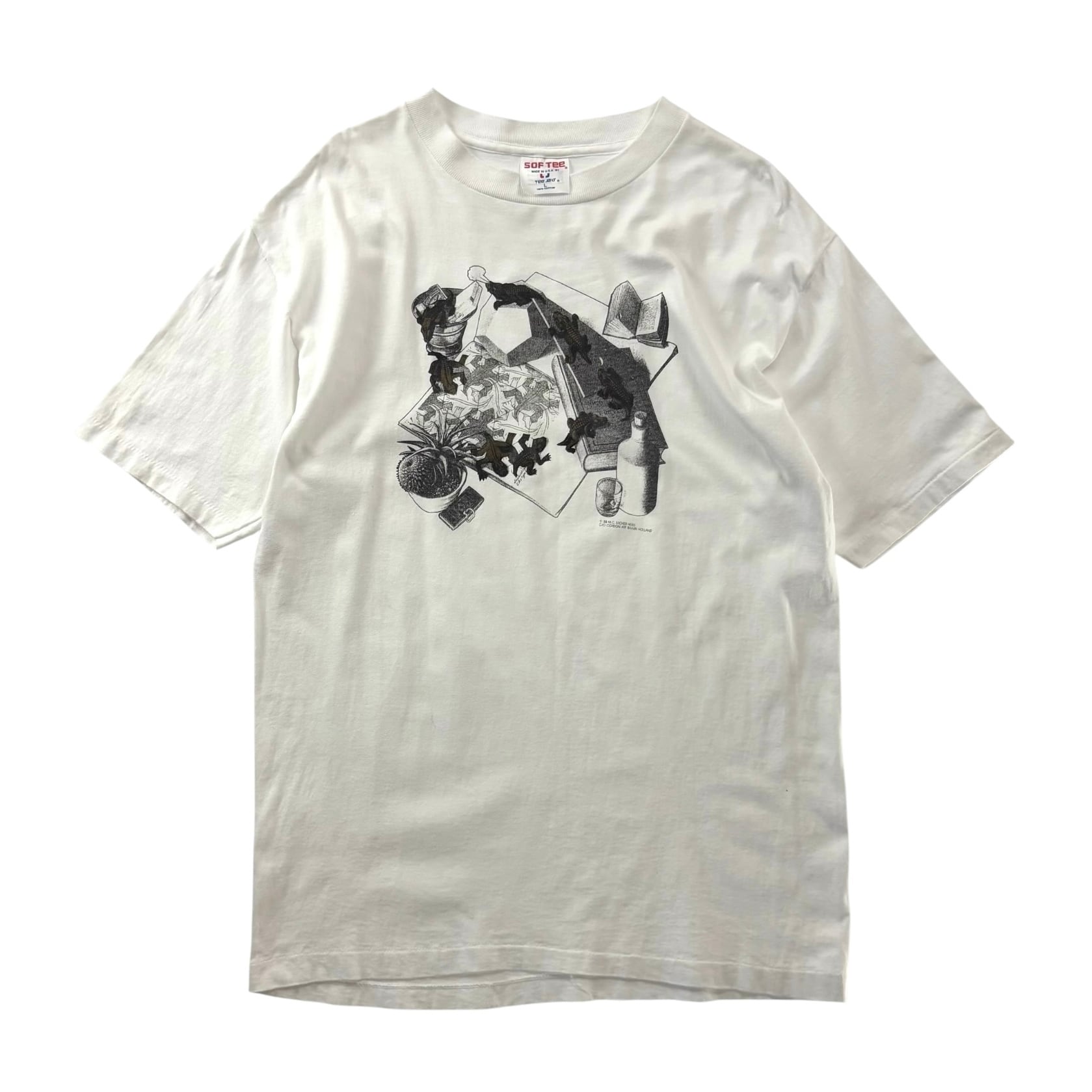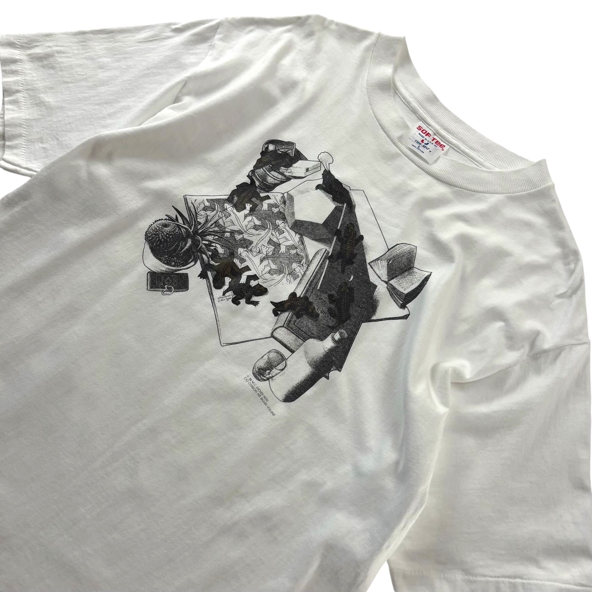 1980's - 1990's "M.C.ESCHER" Reptiles S/S Art Printed T-shirt Made In USA L (SOF Tee) / 80年代〜90年代 MCエッシャー 爬虫類 アートプリントTシャツ USA製 ホワイト ソフティー 80s 90s ヴィンテージ ビンテージ シングルステッチ 騙し絵