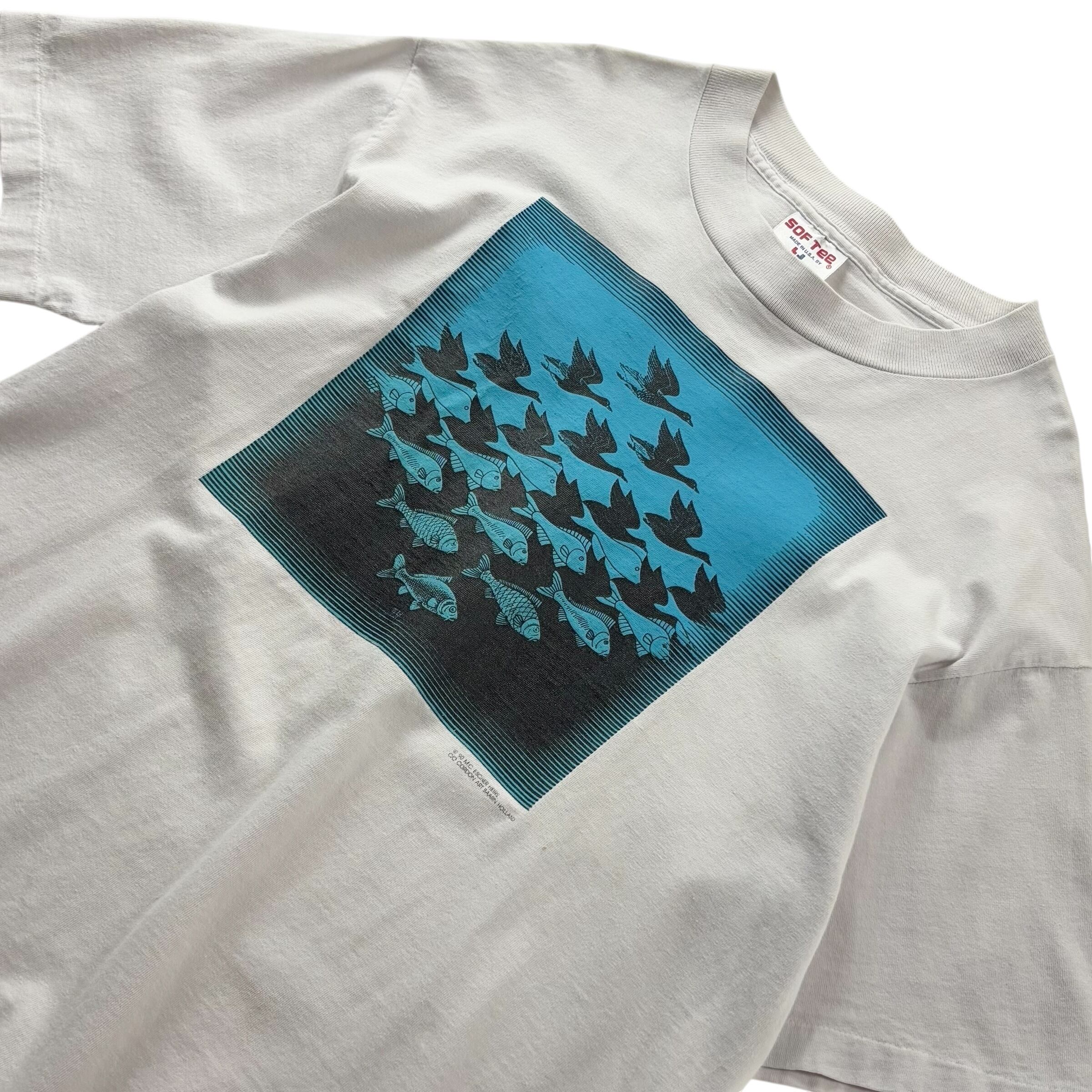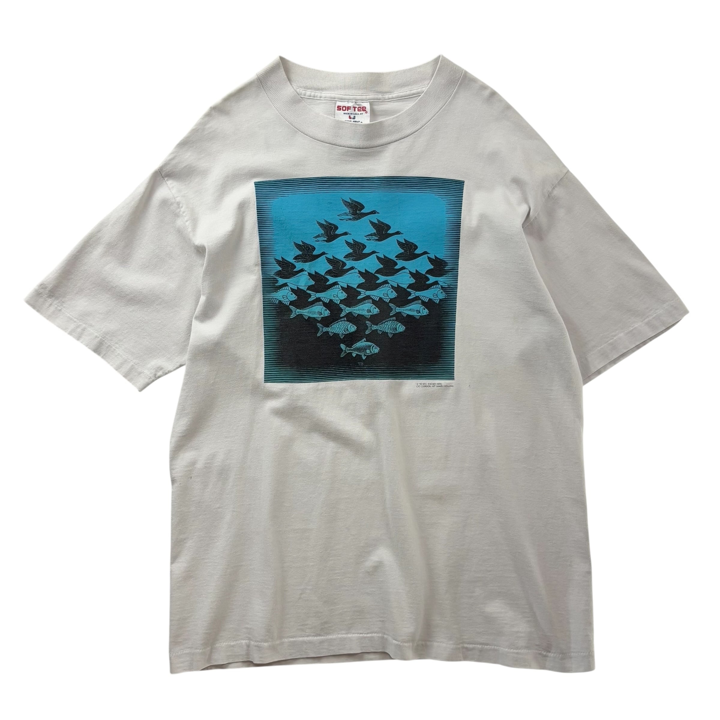 1990's "M.C.ESCHER" Sky and Water S/S Art Printed T-shirt Made In USA L (SOF Tee) / 90年代 MCエッシャー アートプリントTシャツ USA製 カラープリント 空と水 ソフティー 90s ヴィンテージ ビンテージ シングルステッチ 騙し絵