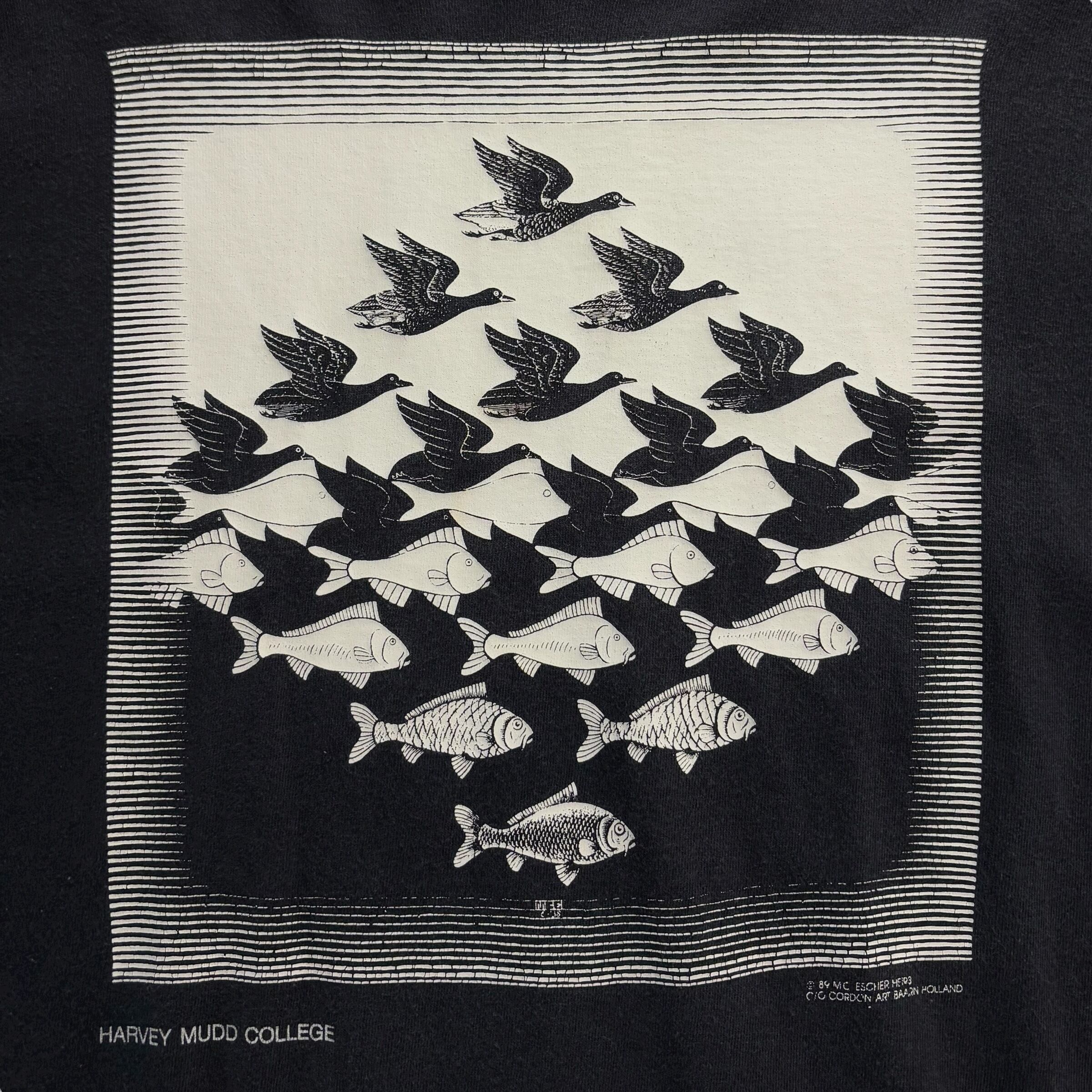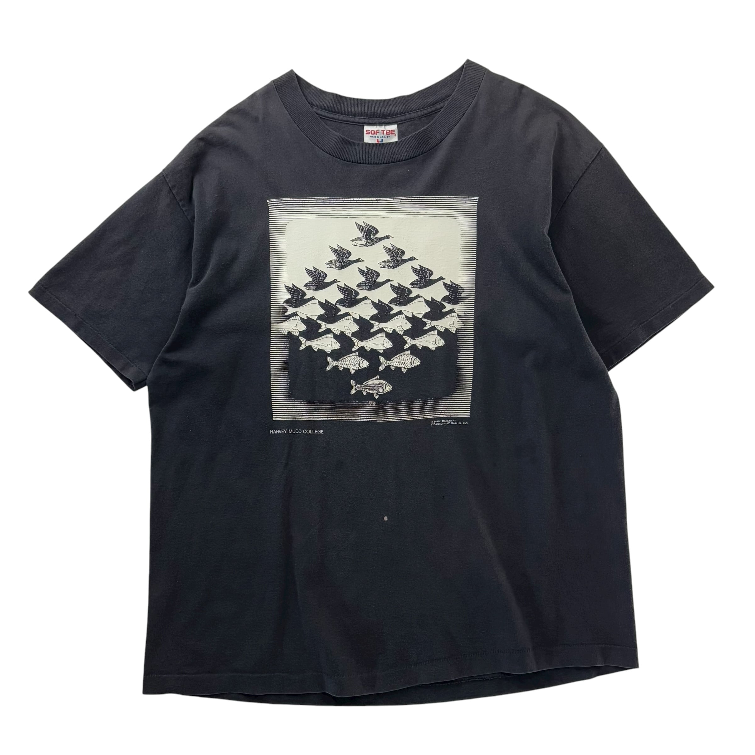 1980's - 1990's "M.C.ESCHER" Sky and Water S/S Art Printed T-shirt Made In USA XL (SOF Tee) / 80年代〜90年代 MCエッシャー アートプリントTシャツ USA製 空と水 ソフティー 80s 90s ヴィンテージ ビンテージ シングルステッチ 騙し絵