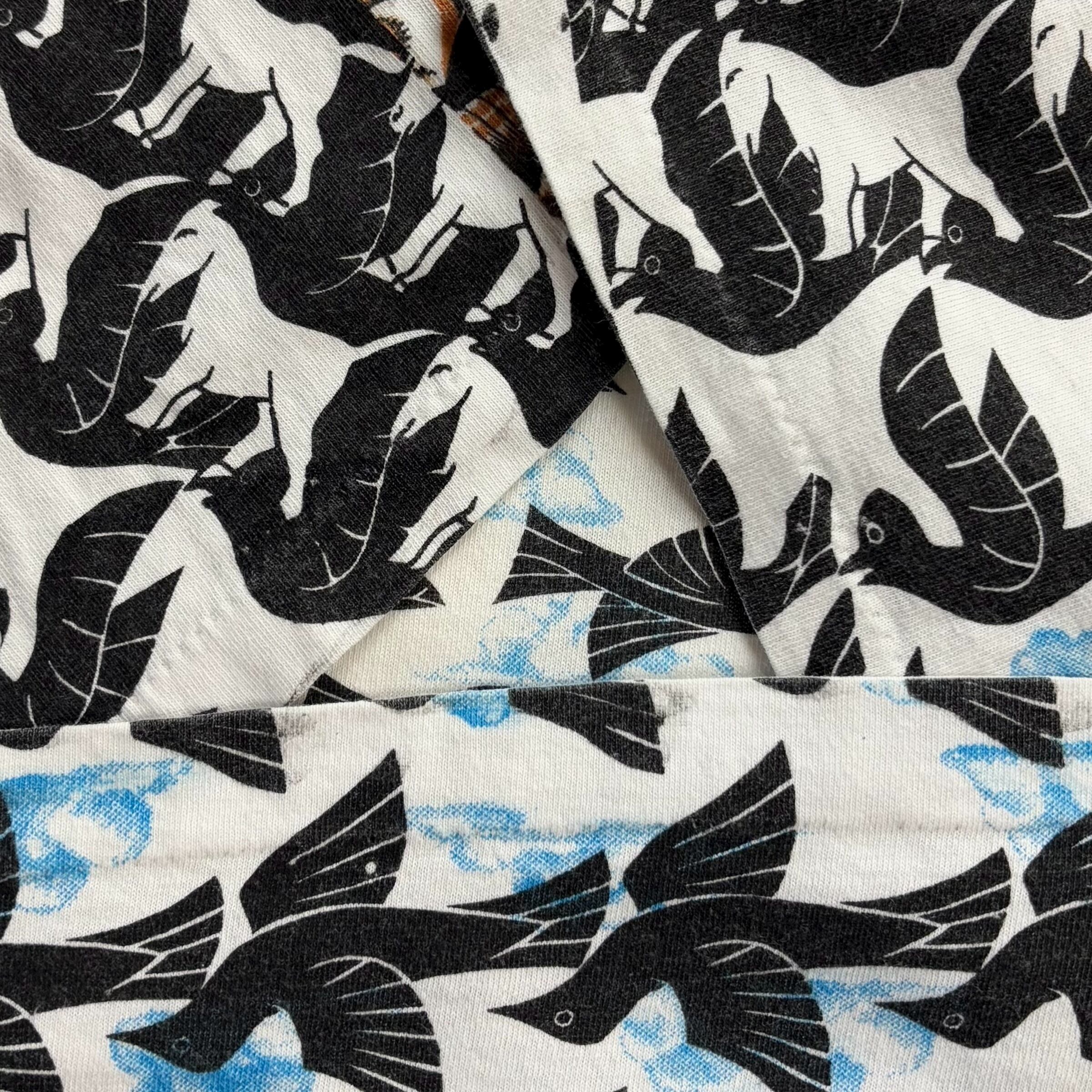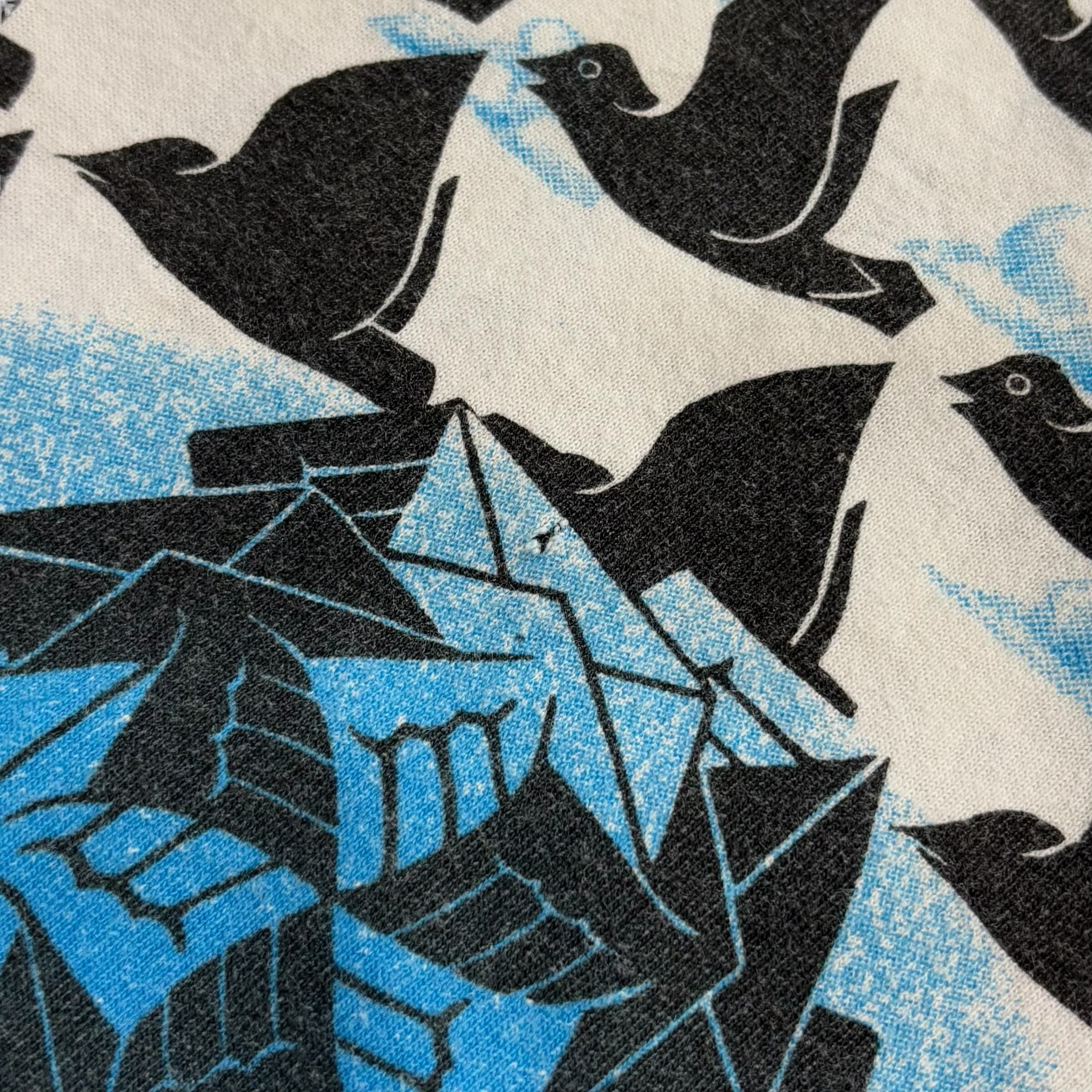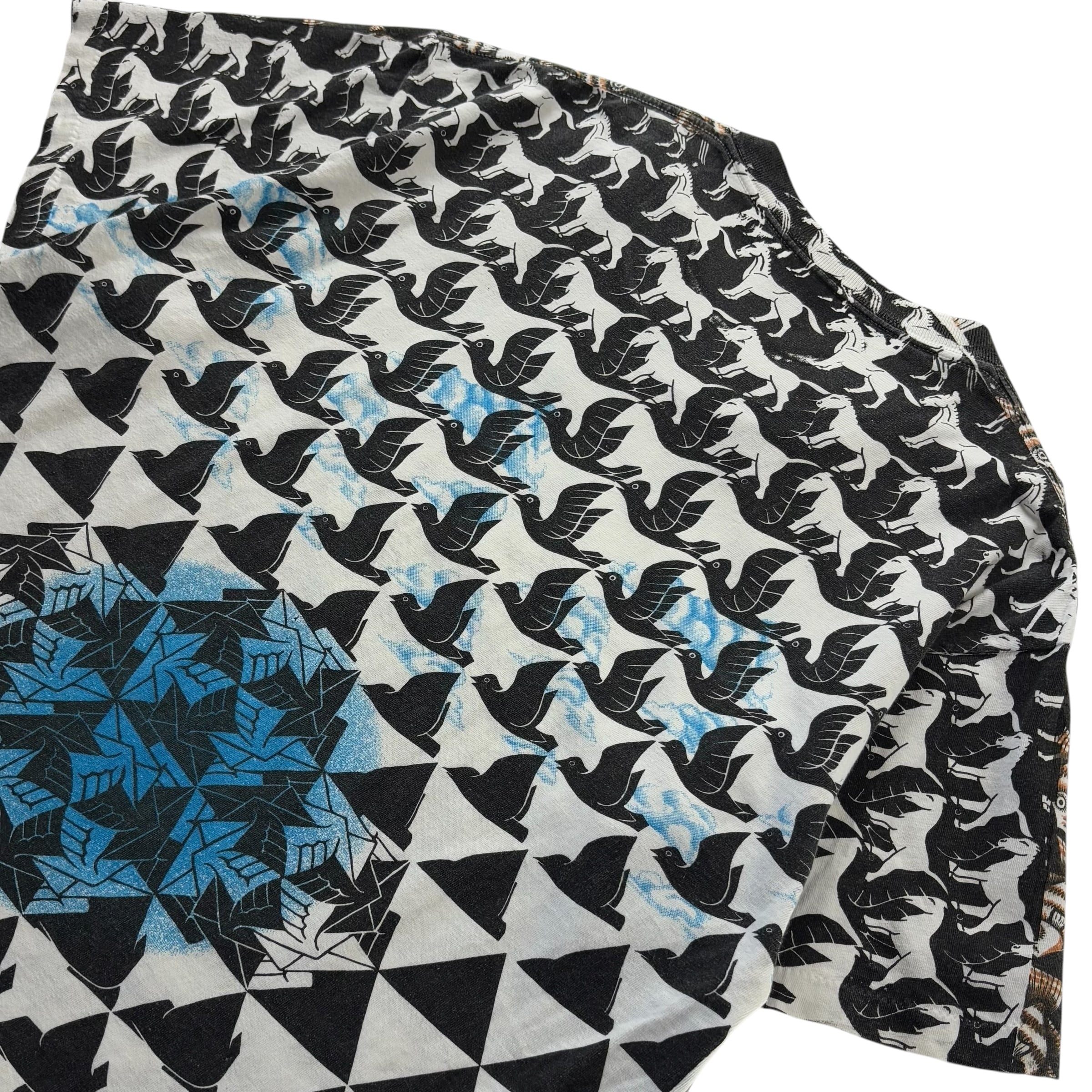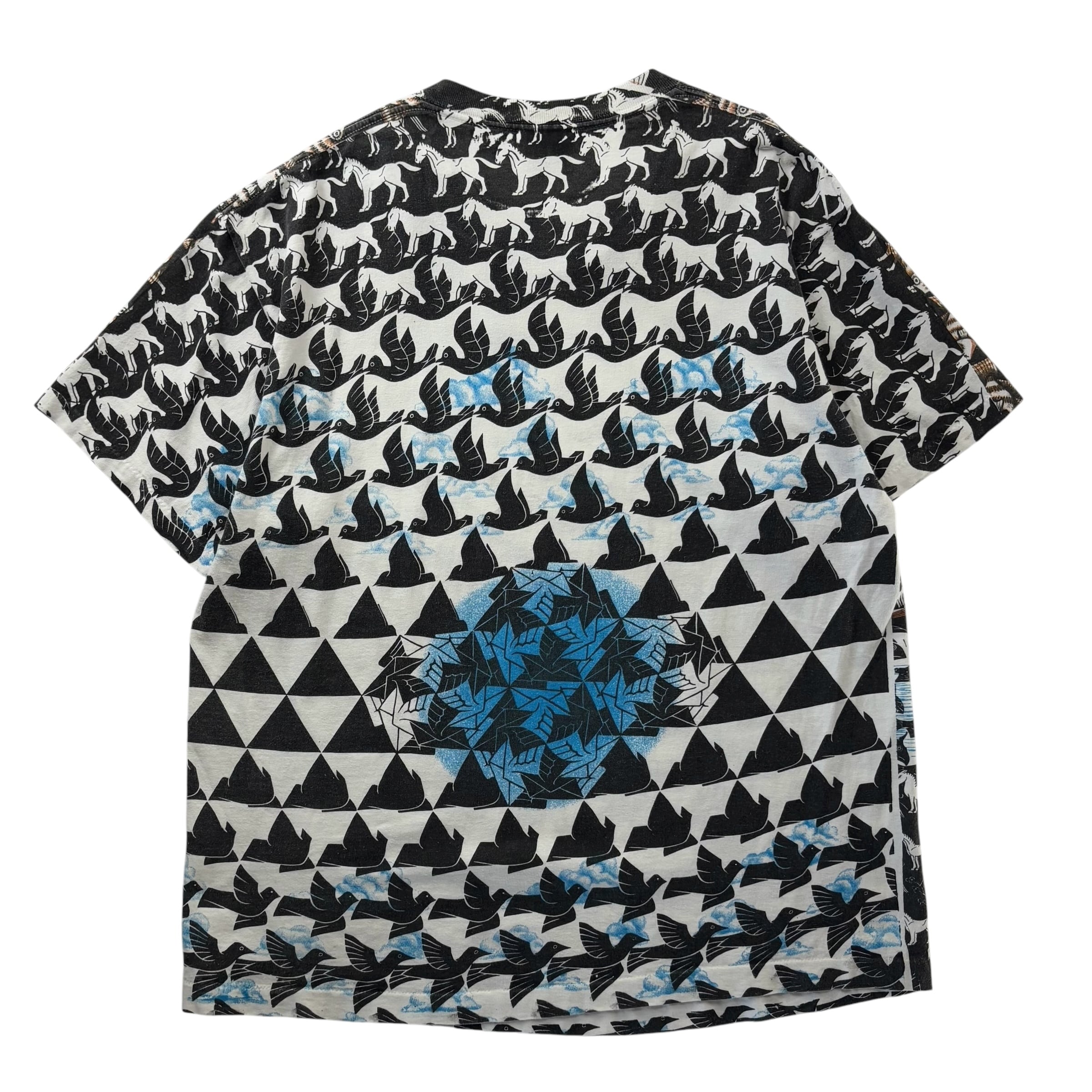 1990's "M.C.ESCHER" S/S AOP Art Printed T-shirt Made In USA XL (ANDAZIA) / 90年代 MCエッシャー アートプリントTシャツ USA製 紙タグ アンダジア 総柄 90s ヴィンテージ ビンテージ シングルステッチ 騙し絵