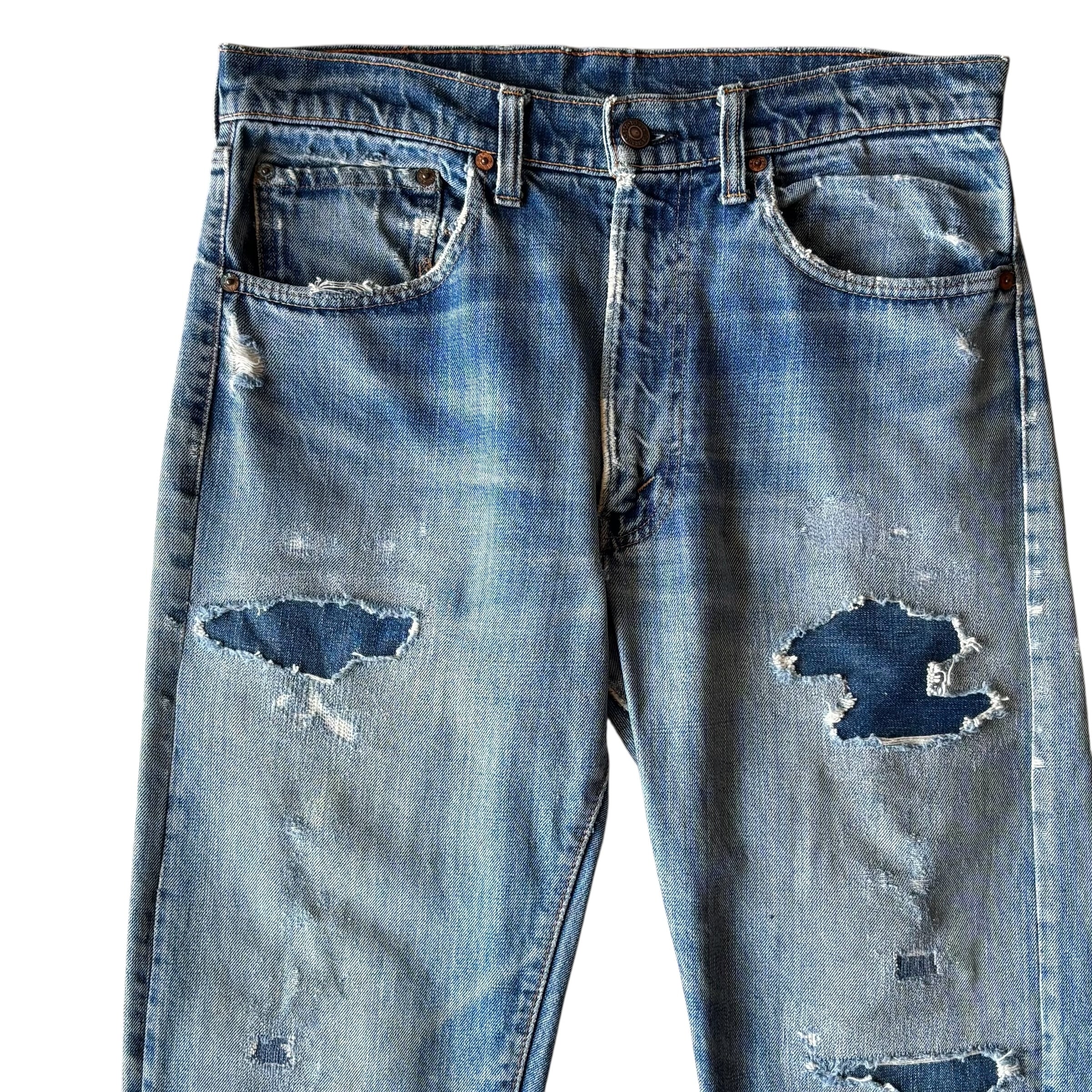 1970's "Levi's 505" 66 Single Vintage Denim Pants W32× L28 (実寸) / 70年代 リーバイス505 66前期 デニムパンツ 雰囲気系 リペア 70s ヴィンテージ ビンテージ