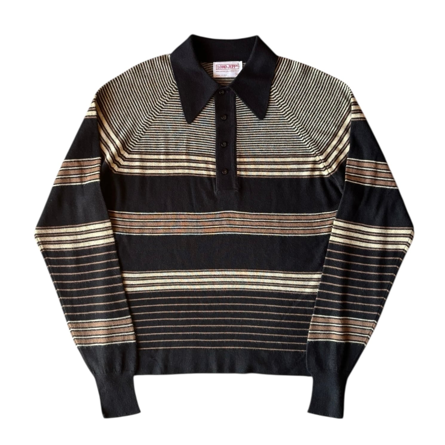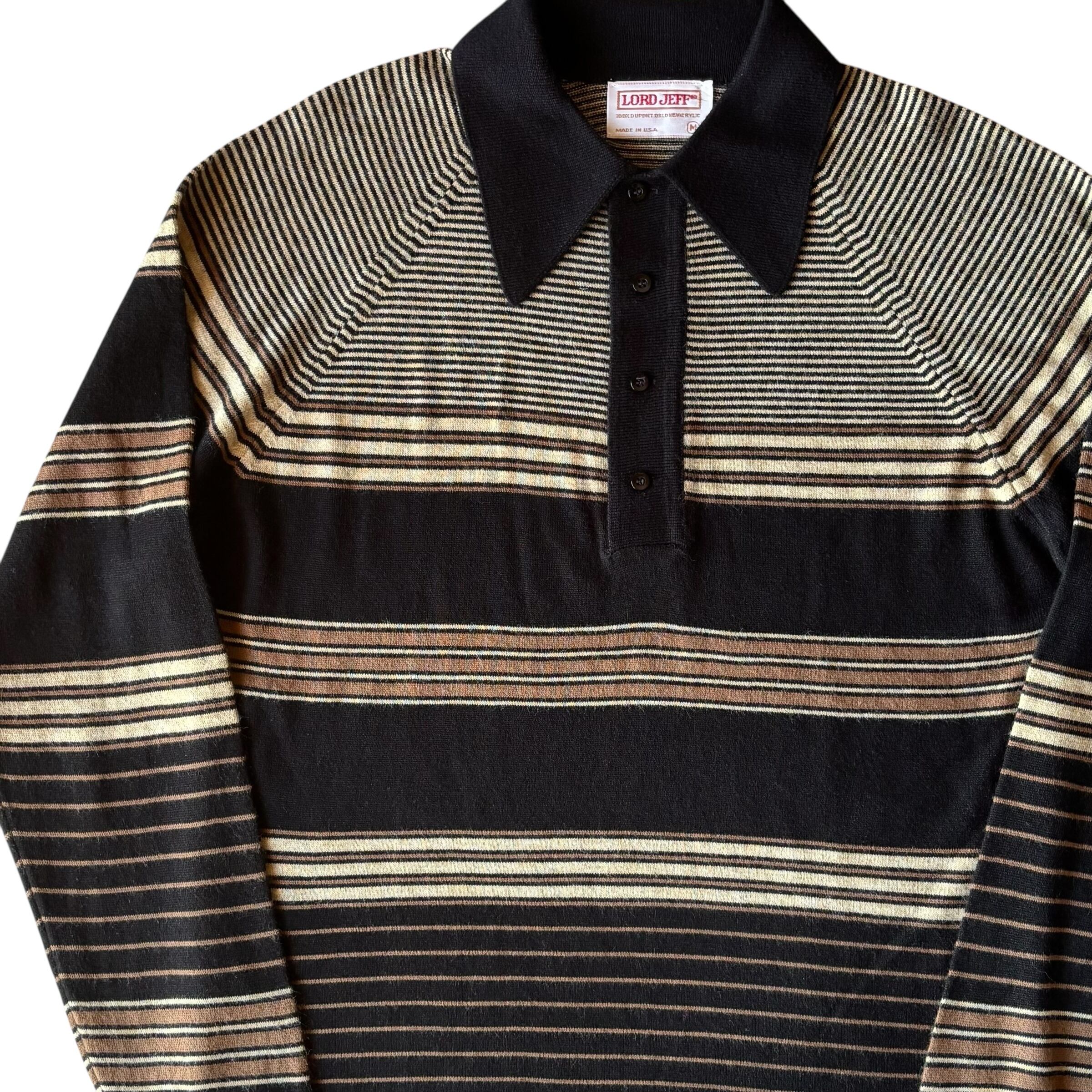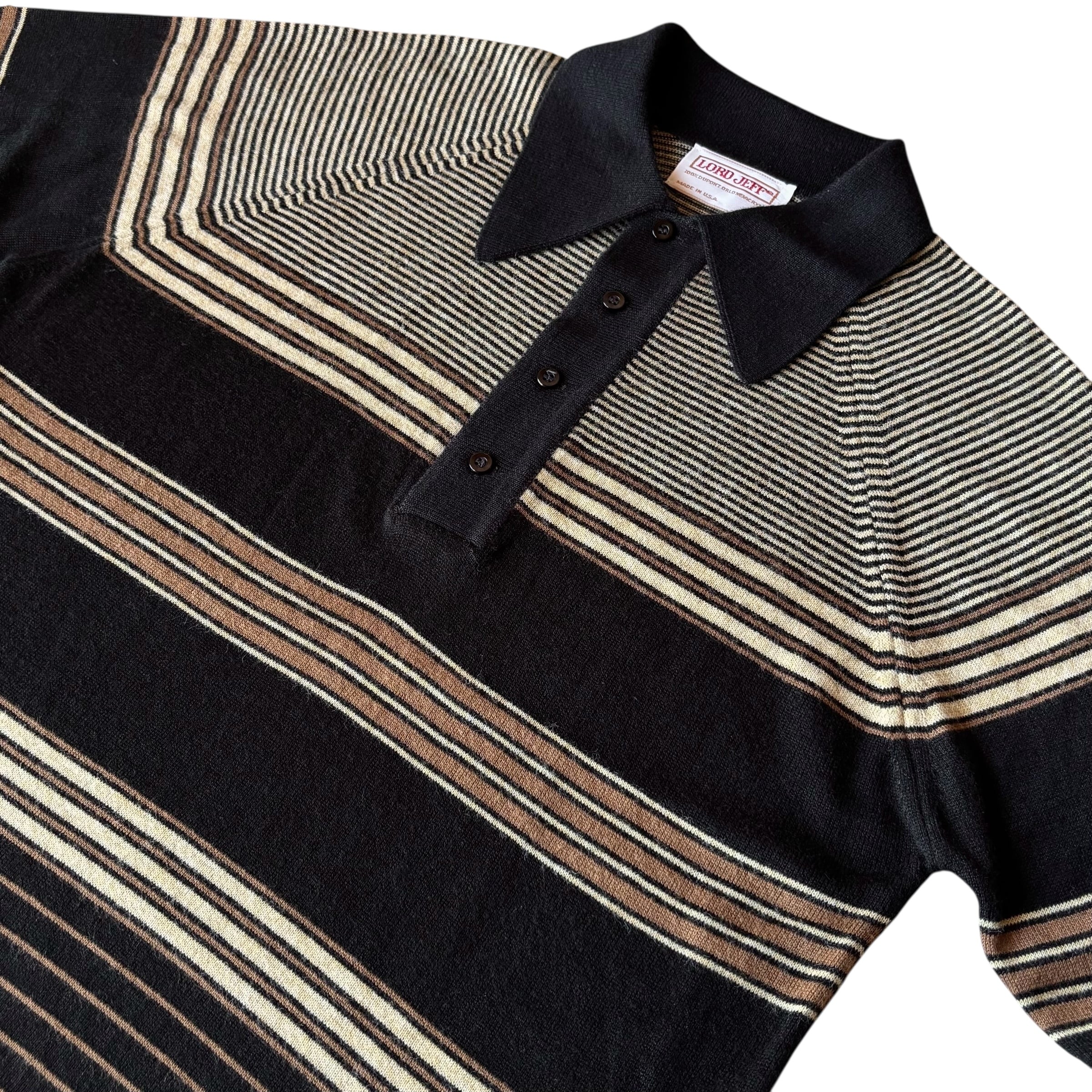1970's "LORD JEFF" Vintage Pullover Knit Polo Shirt Made In USA / 70年代 ロードジェフ ヴィンテージ ボーダー柄 ハイゲージ ニットポロシャツ USA製 70s ビンテージ