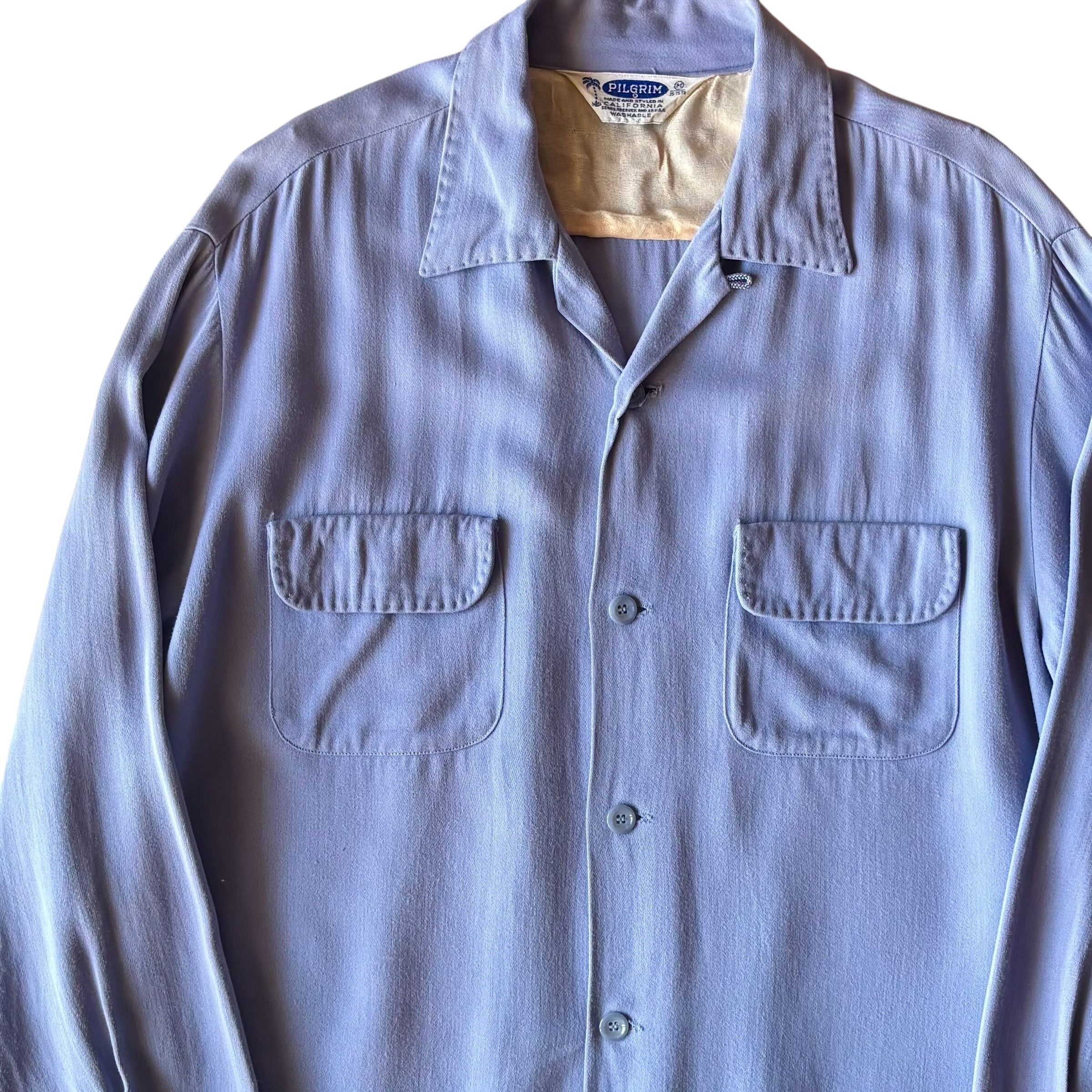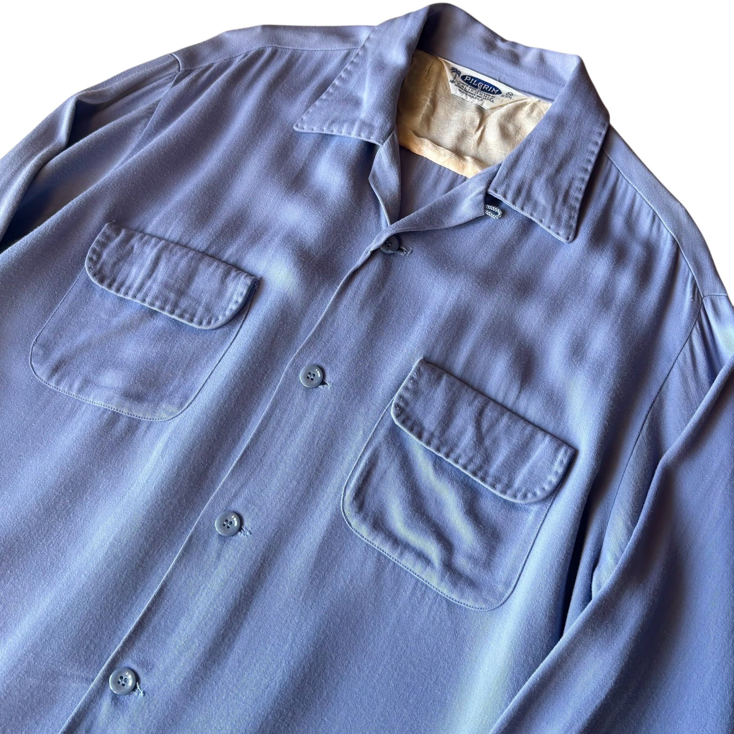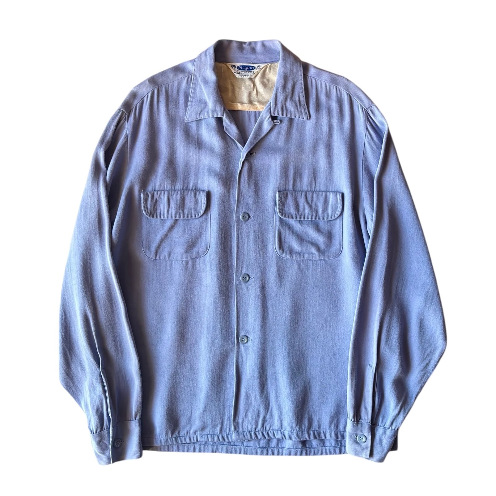 1950's "PILGRIM" Vintage Rayon Gabardine Shirt / 50年代 ピルグリム ヴィンテージ レーヨンギャバジンシャツ 50s ビンテージ パイピング ハンドステッチ ギャバシャツ レーヨンシャツ