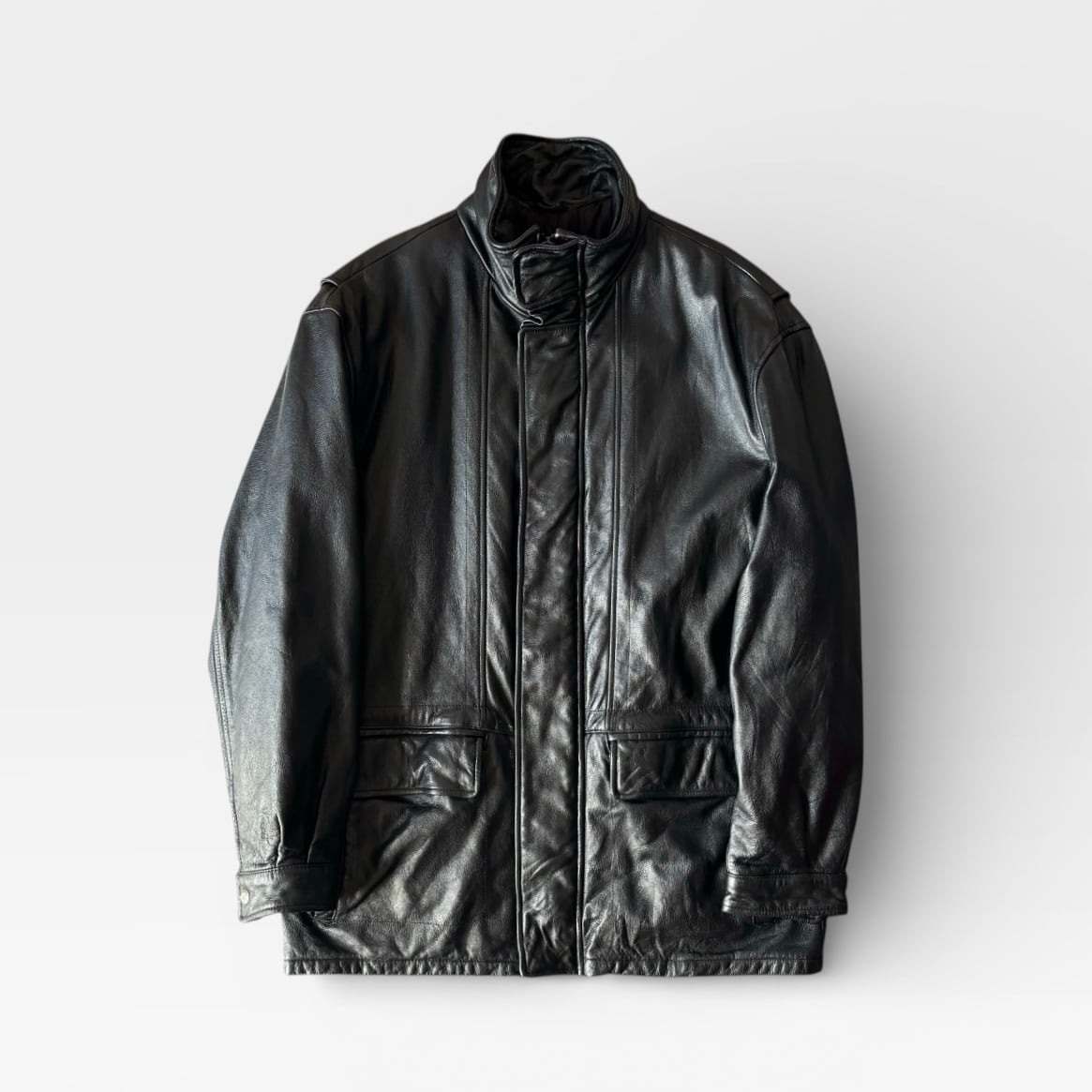 "LONDON FOG" High-neck Leather Jacket / ロンドンフォグ ハイネック デザインレザージャケット ハーフコート