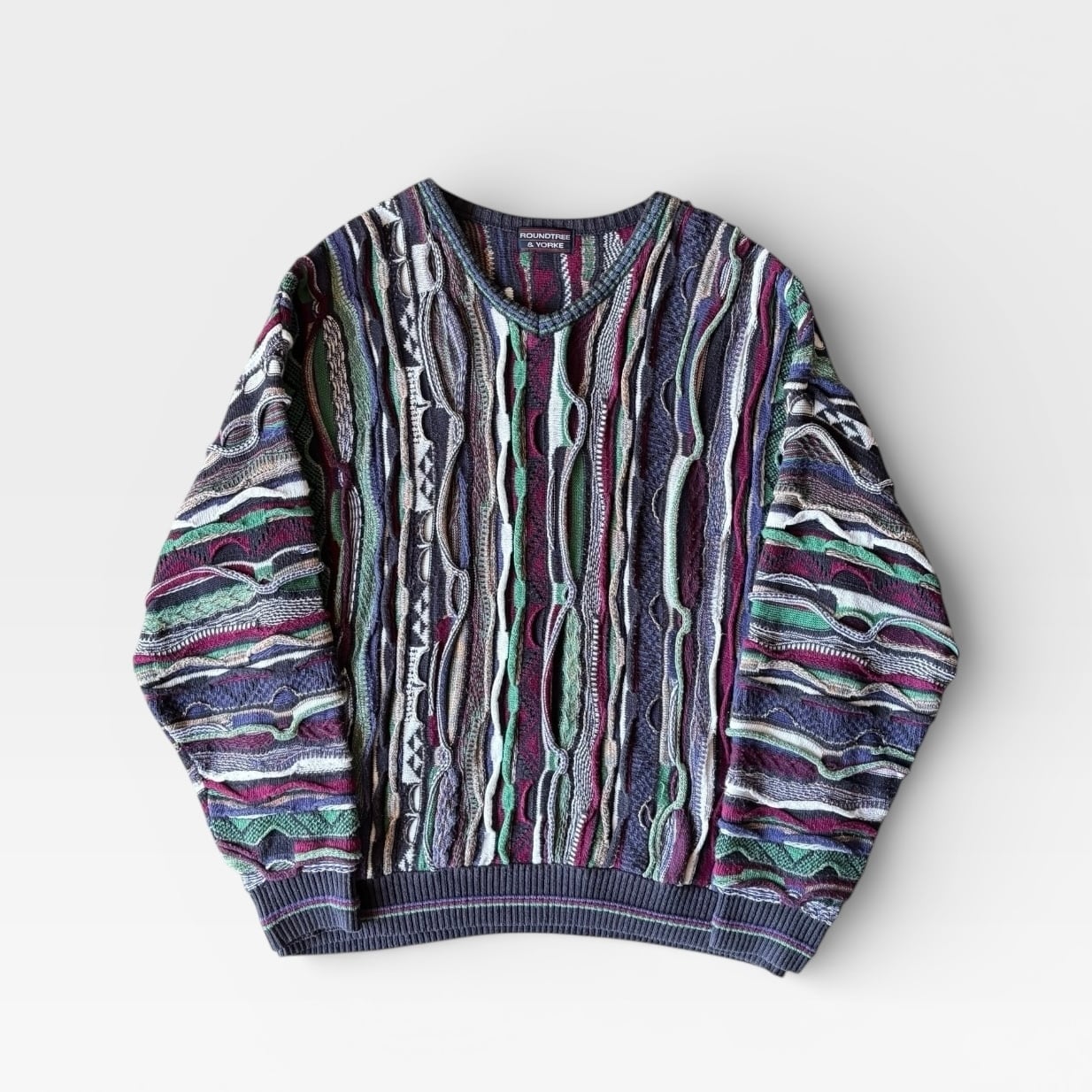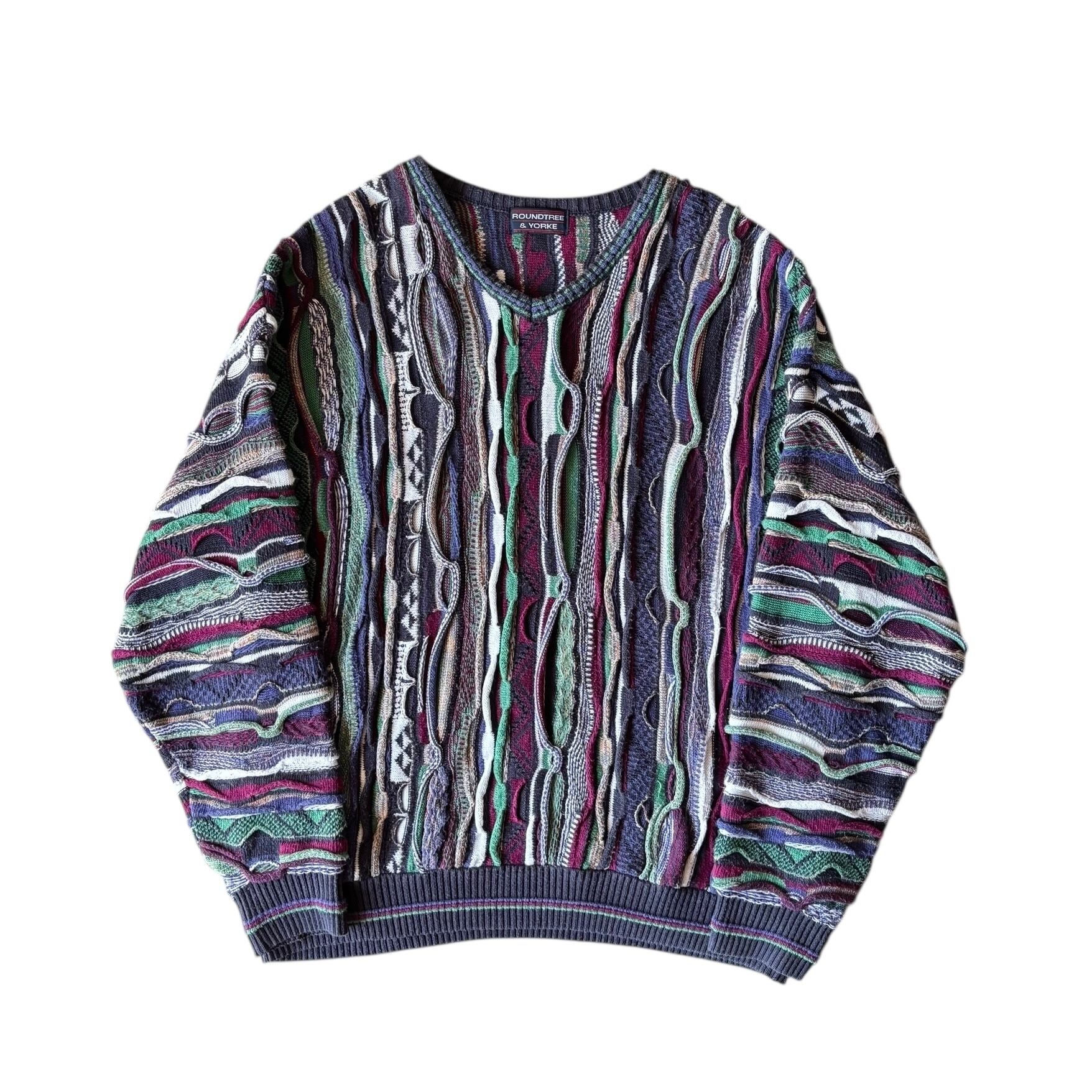 1990's "ROUNDTREE & YORKE" 3D Knit Design Sweater / 90年代 ヴィンテージ 3Dニット 総柄セーター 90s ビンテージ