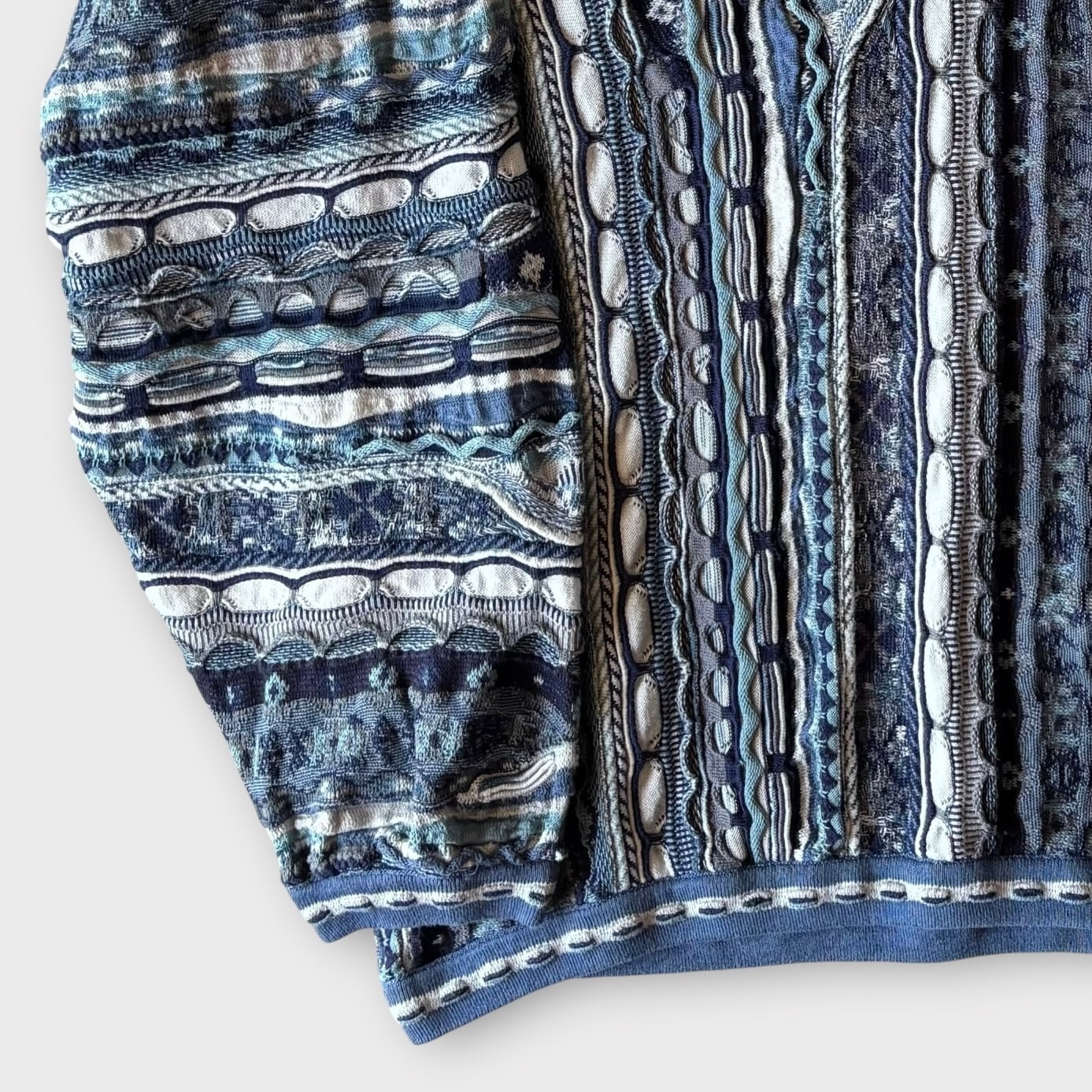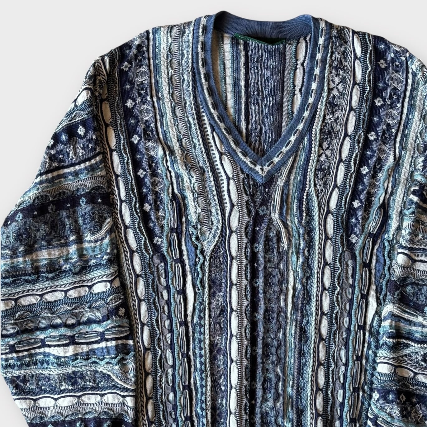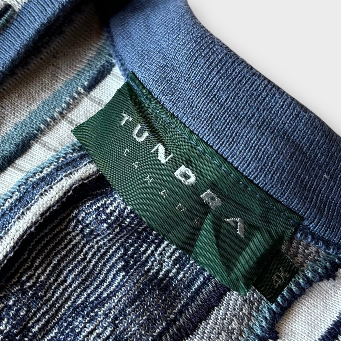 1990's "TUNDRA" Vintage 3D Knit Design Sweater Made In CANADA 4X / 90年代 ツンドラ 3Dニット 総柄セーター カナダ製 マーセライズコットン 柄ニット オーバーサイズ 90s ヴィンテージ ビンテージ コットンニット