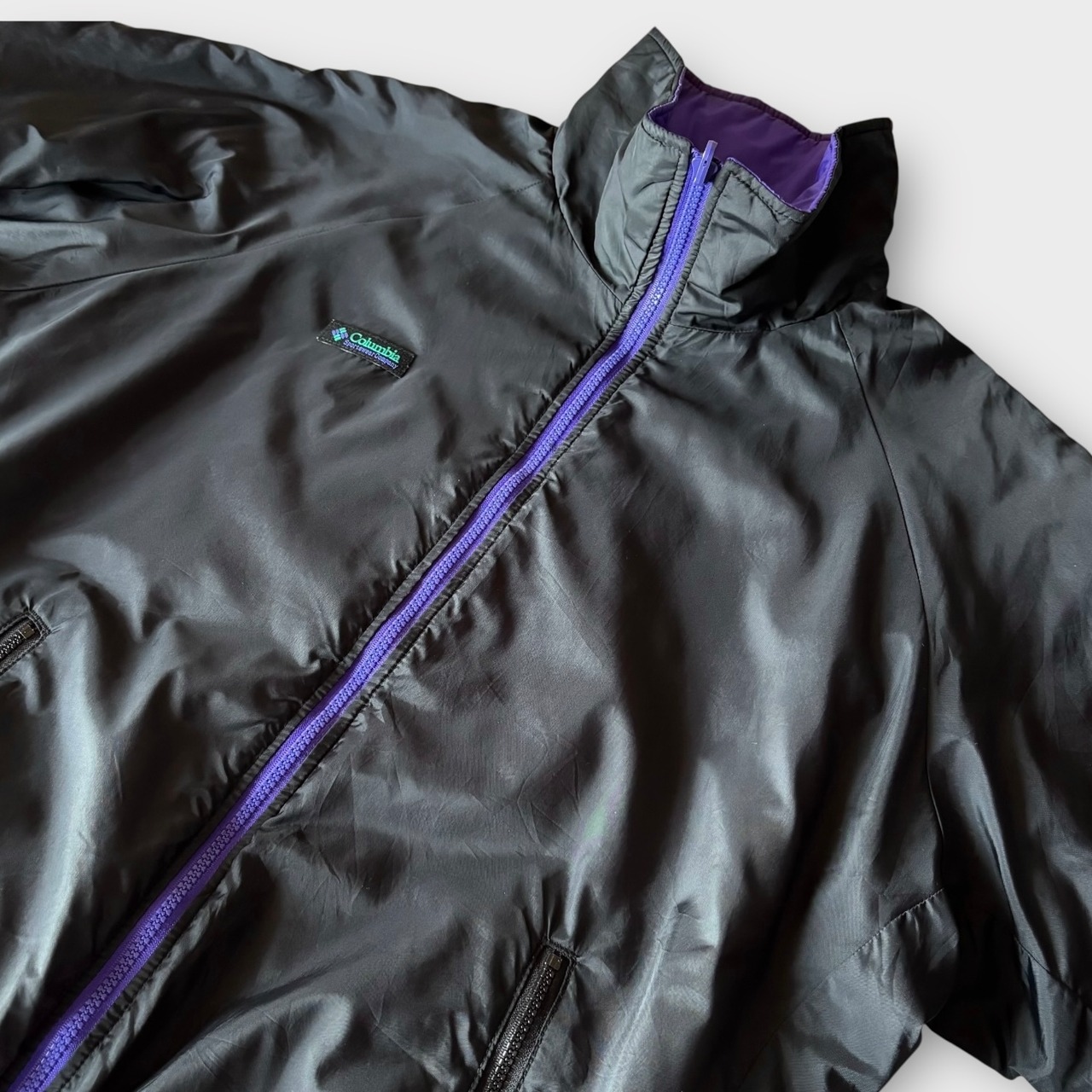1990's "Columbia" Vintage Reversible Nylon Jacket / 90年代 コロンビア ヴィンテージ リバーシブル ナイロンジャケット ブラック パープル 90s ビンテージ 白タグ ジップインジップ