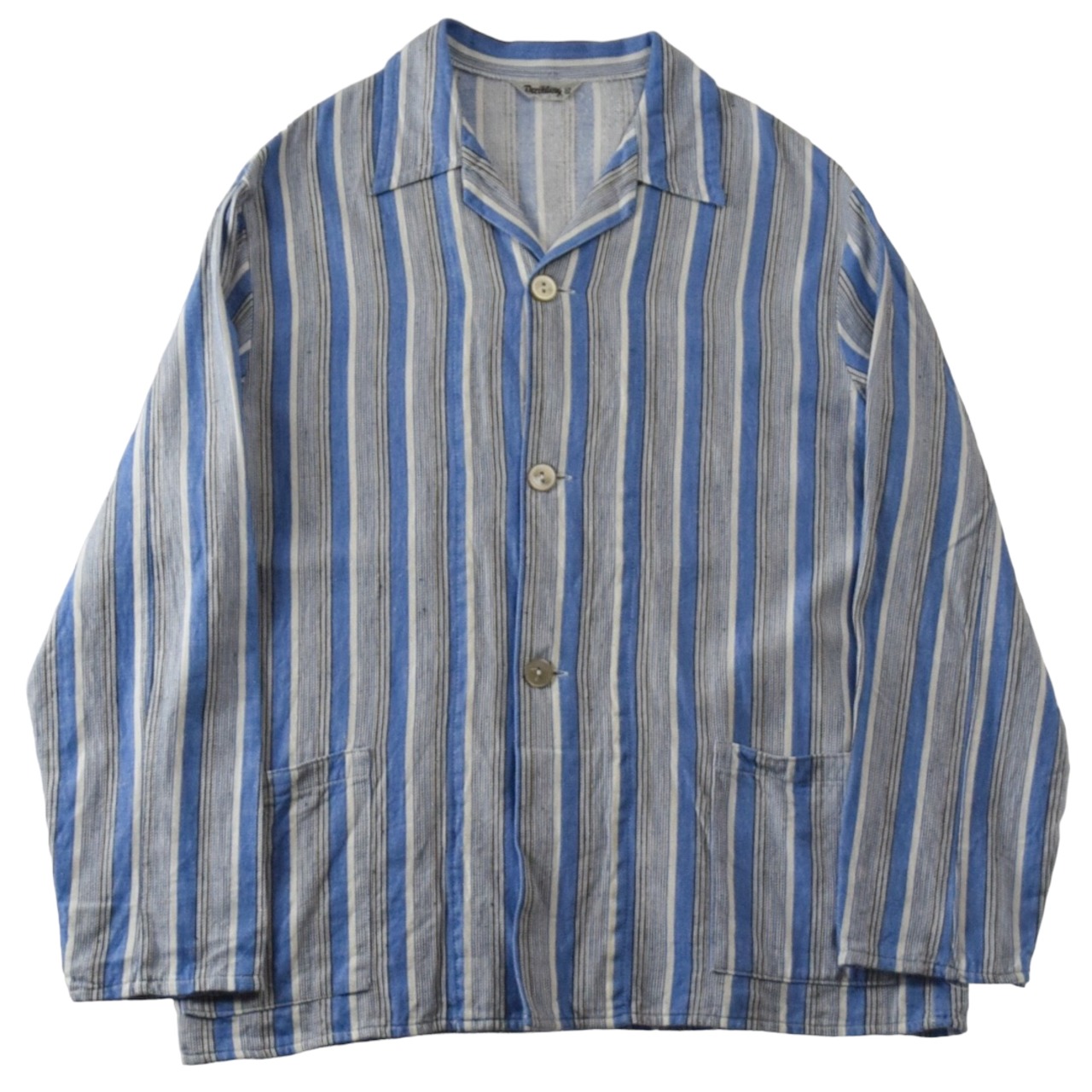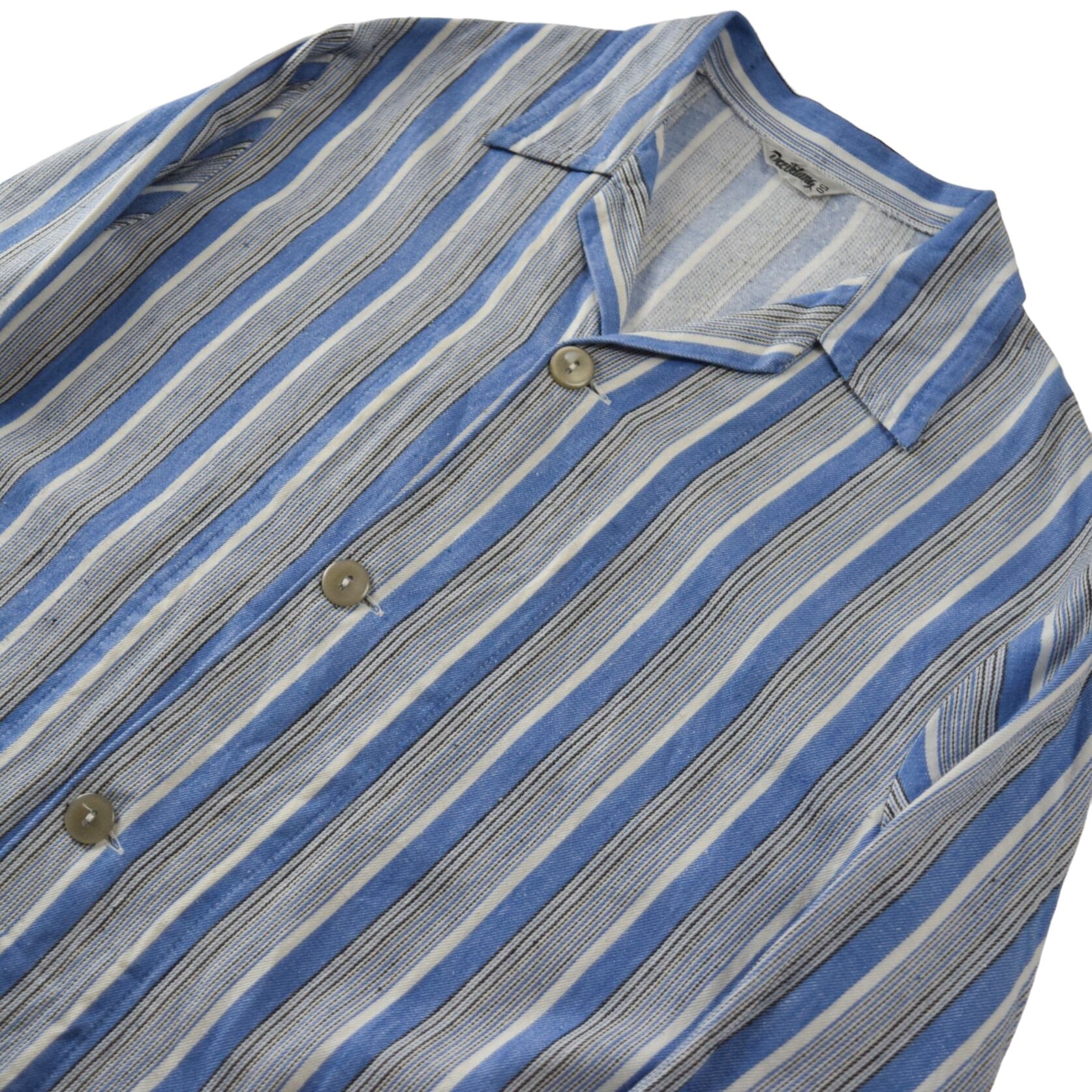 1970's Euro Vintage Open Collar Striped Cotton Pajamas Shirt / 70年代 ヴィンテージ ストライプ 開襟 パジャマシャツ 70s ビンテージ