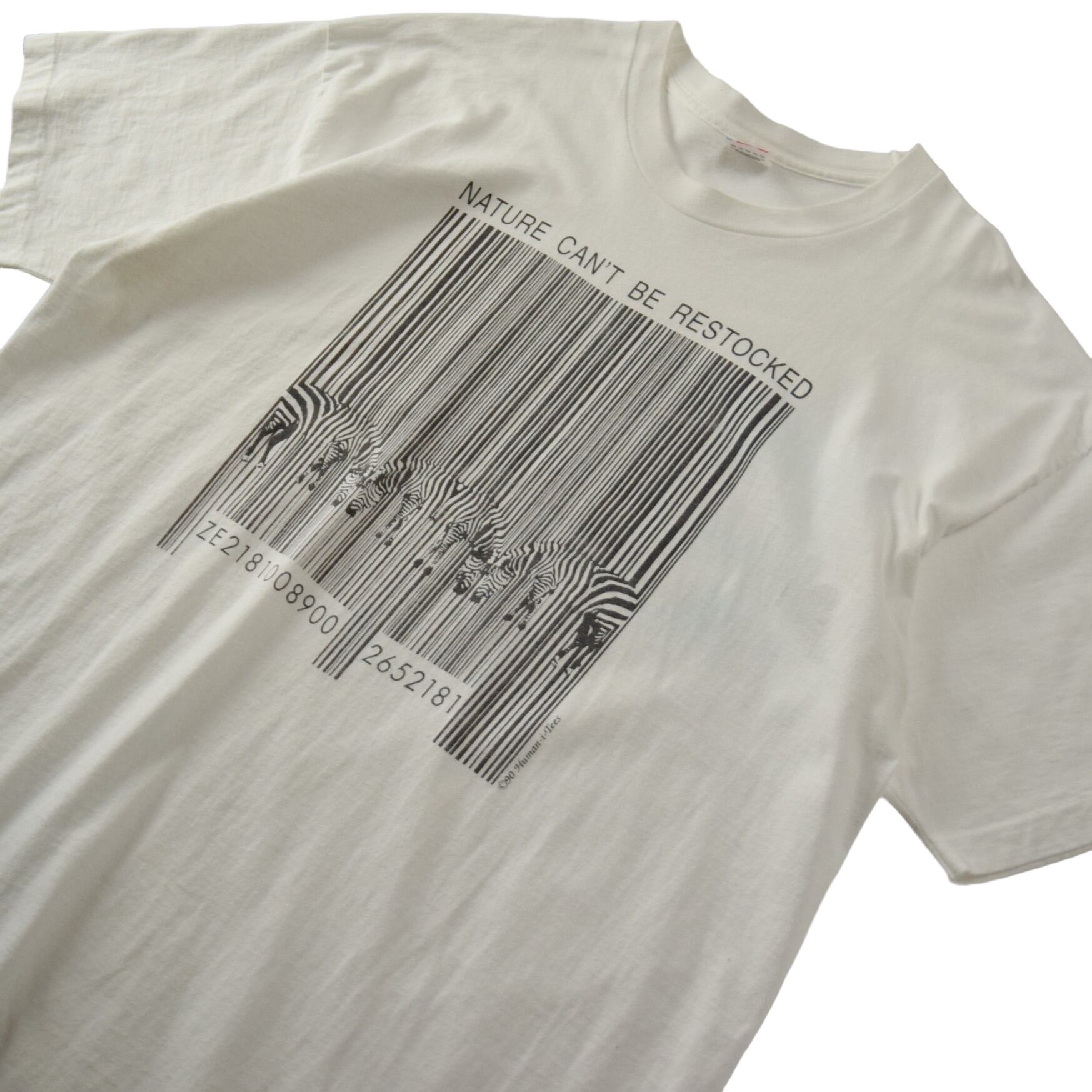 1990's "Human-i-Tees" S/S Vintage Art Printed T-shirt XXL Made In USA "NATURE CAN'T BE RESTOCKED" FRUIT OF THE LOOM / 90年代 フルーツオブザルーム ヴィンテージ アートプリントTシャツ USA製 90s ビンテージ シマウマ アニマルプリント