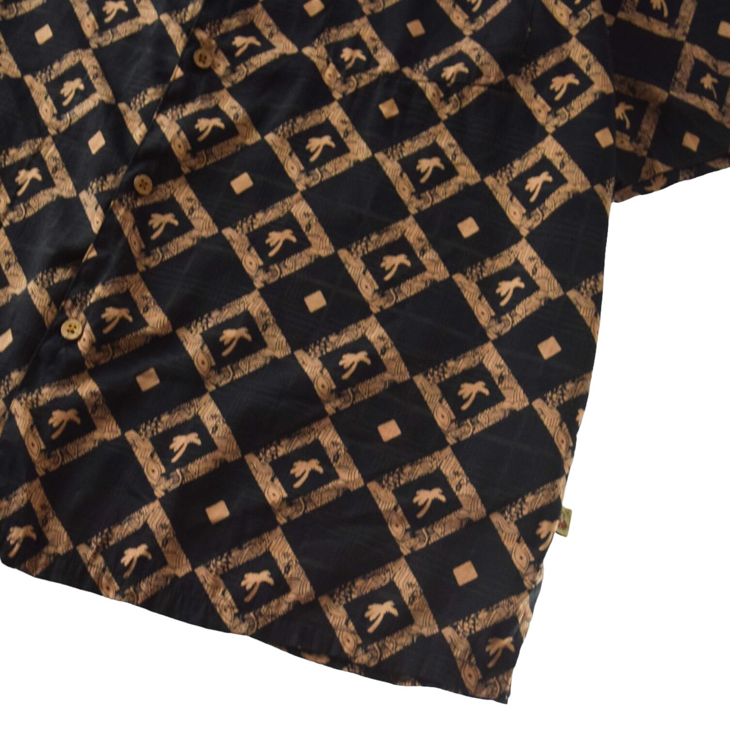 00s S/S Open Collar Rayon Shirt / 半袖 オープンカラー 総柄レーヨンシャツ 00's 柄シャツ ブラック 開襟シャツ