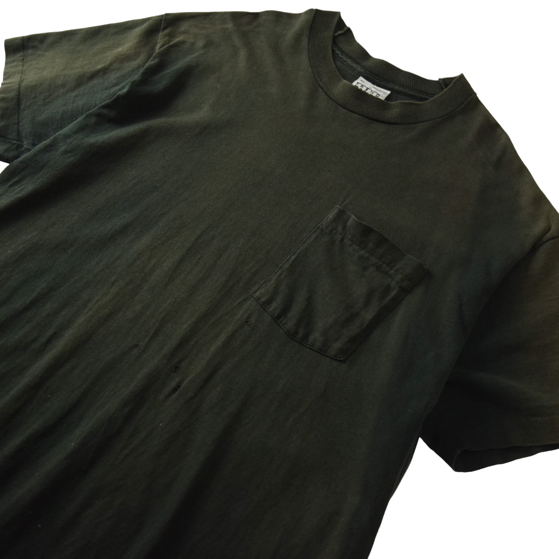 1990's "BASICS" S/S Vintage Pocket T-shirt XL Made In USA Good Fade!! / 90年代 ヴィンテージ ポケットTシャツ 耳付き USA製 サンフェード 雰囲気系 シングルステッチ 90s ビンテージ ポケTee