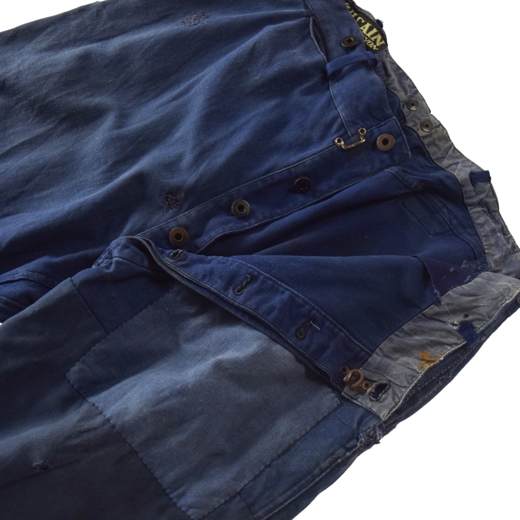 1940's "VULCAIN" French Vintage Euro Work Pants Good Aging!! W34 / 40年代 ヴァルカン フレンチヴィンテージ ユーロワークパンツ 針刺しシンチバック ビンテージ サスペンダーボタン付き 40s リペア 雰囲気系
