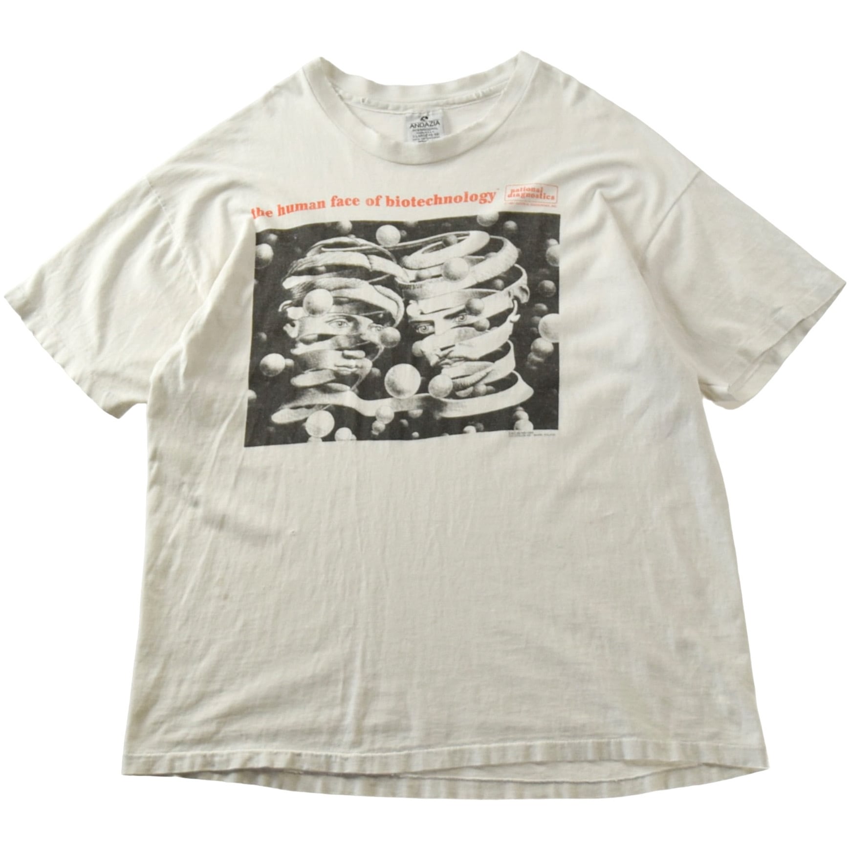 1990's "M.C.Escher" S/S Vintage Art Printed T-shirt Made In USA XL (ANDAZIA) / 90年代 MCエッシャー ヴィンテージ アートプリントTシャツ USA製 婚姻の絆 90s ビンテージ シングルステッチ アンダジア