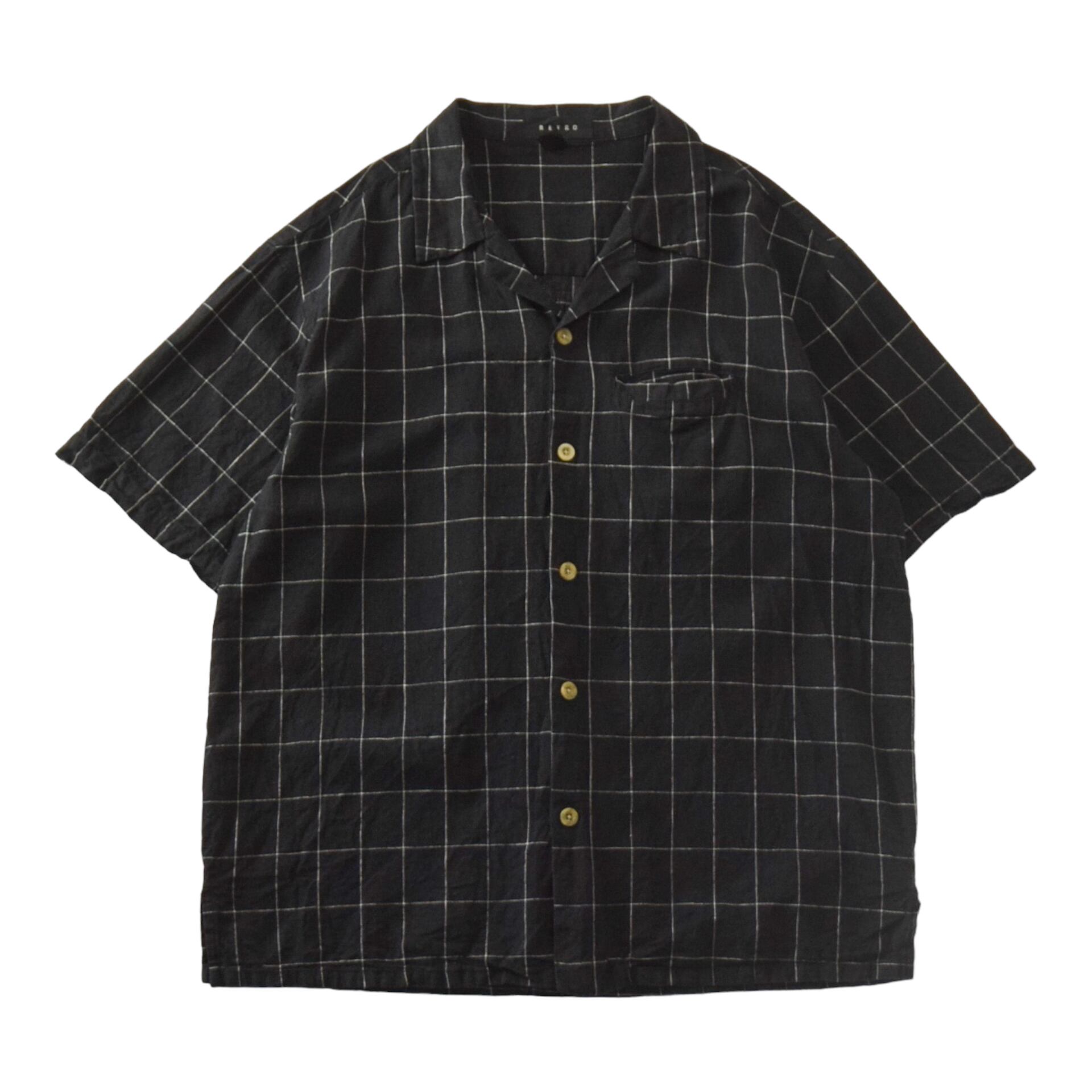 00's S/S Open Collar Graph Pattern Cotton Linen Shirt XL / オープンカラー グラフチェック コットンリネン 開襟シャツ ボックスシルエット 半袖