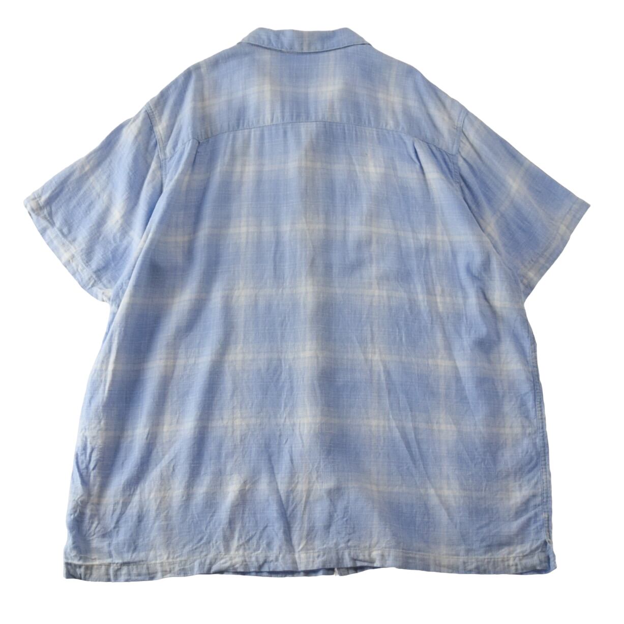 "haggar" S/S Open Collar Linen × Rayon Ombre pattern Shirt XXL / オープンカラー オンブレチェック 半袖 開襟シャツ リネンレーヨン シャドーチェック オーバーサイズ とろみ