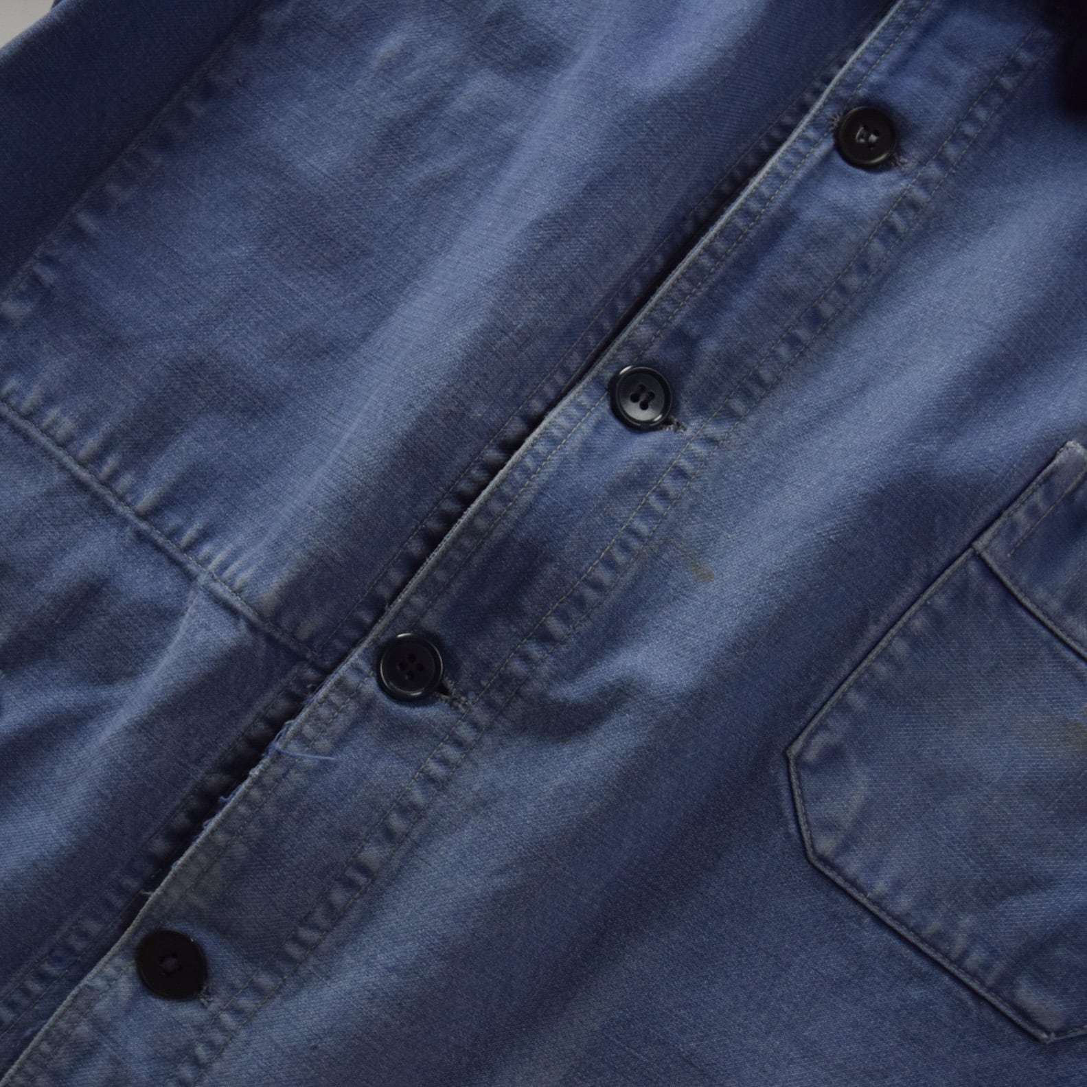 裾や袖先、襟に擦れやリペア痕、小傷等見られます。また、部分的に薄汚れ、サンフェードによる経年の褪色が見られます。