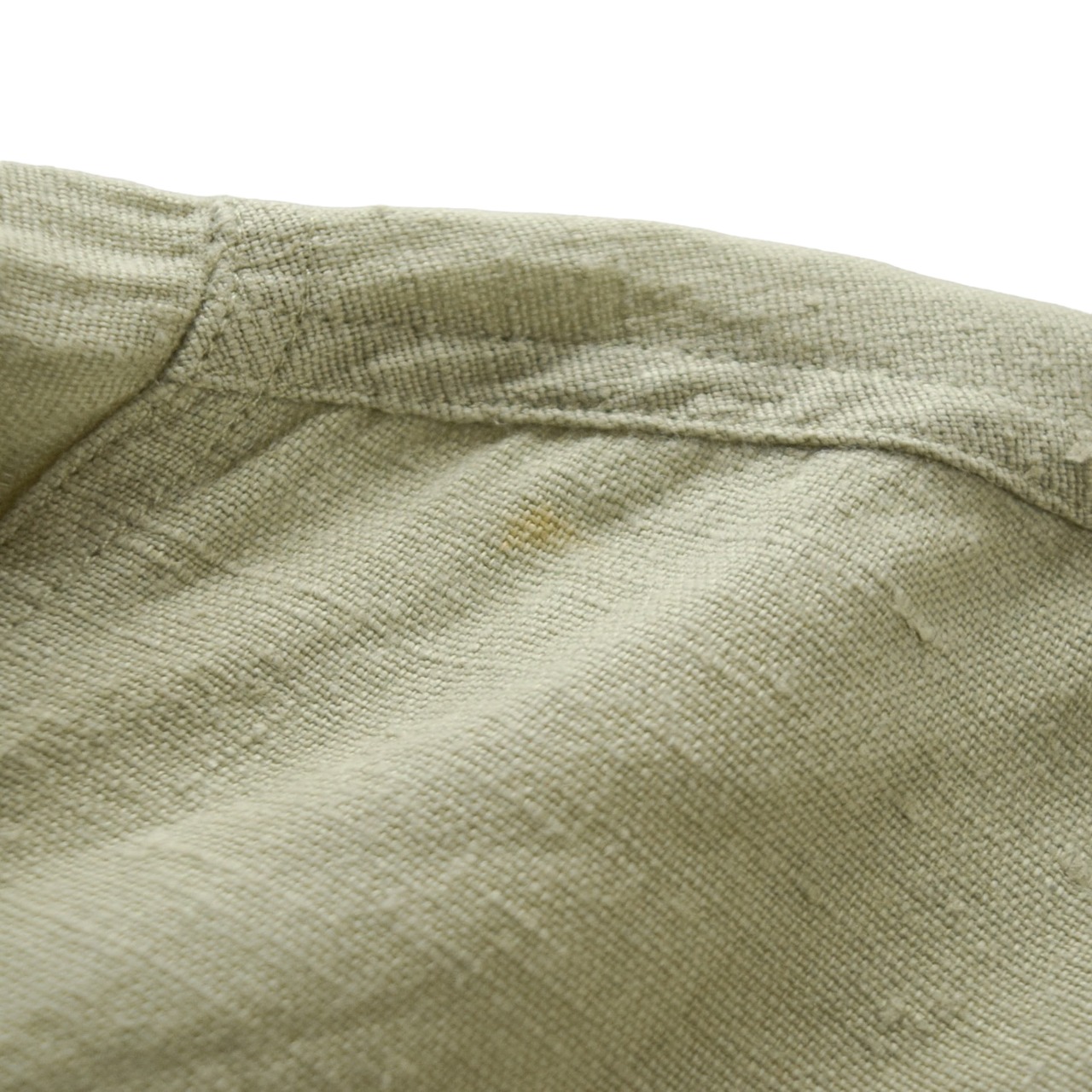 ほとんど目立ちませんが、肩に極薄い小さなシミ、左袖裏に薄汚れが見られます。