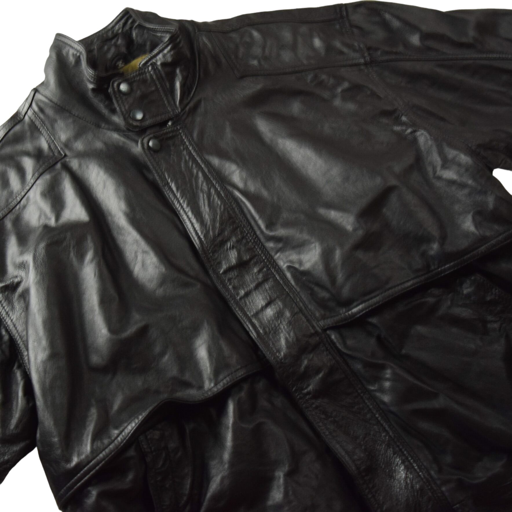 1980's -1990's "Pierre Cardin" Vintage Lambs Leather Blouson / 80年代〜90年代 ピエールカルダン ヴィンテージ ハイネック 比翼 デザインレザージャケット L ブラック ブルゾン 80s 90s ビンテージ 中綿入り
