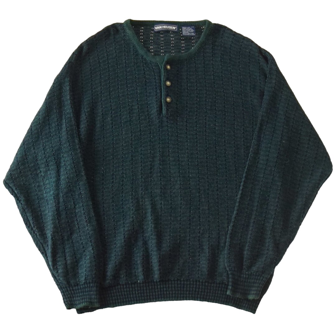 1990's "VAN HEUSEN" Henley neck Pullover Sweater / 90年代 ヴァンヒューゼン ヘンリーネック ハーフボタン プルオーバー ニットセーター 90s ビンテージ ヴィンテージ