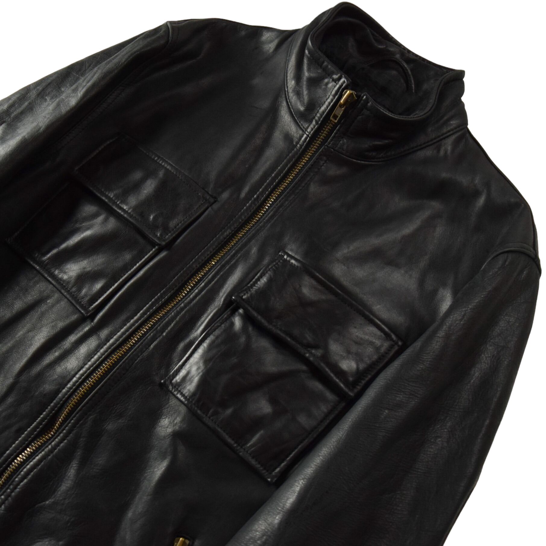 00's "EXPRESS" High Neck Leather Jacket / 00s ハイネック レザージャケット ブラック ライダースジャケット