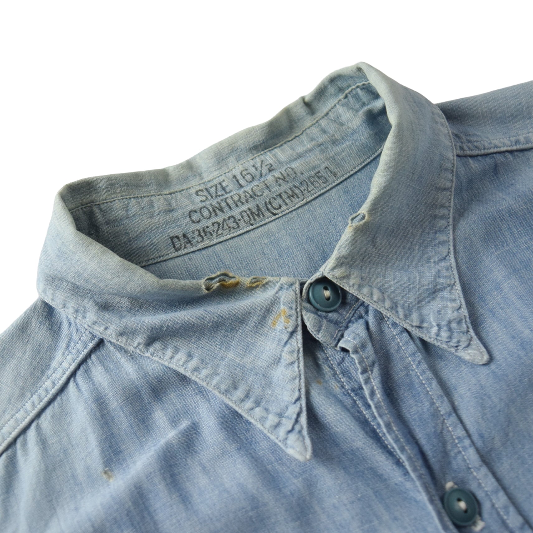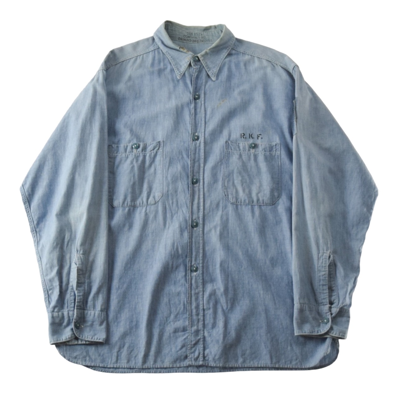 1940's "U.S.NAVY" Vintage Chambray Shirt / 40年代 アメリカ海軍 ヴィンテージ マチ付き シャンブレーシャツ 40s ビンテージ 雰囲気系