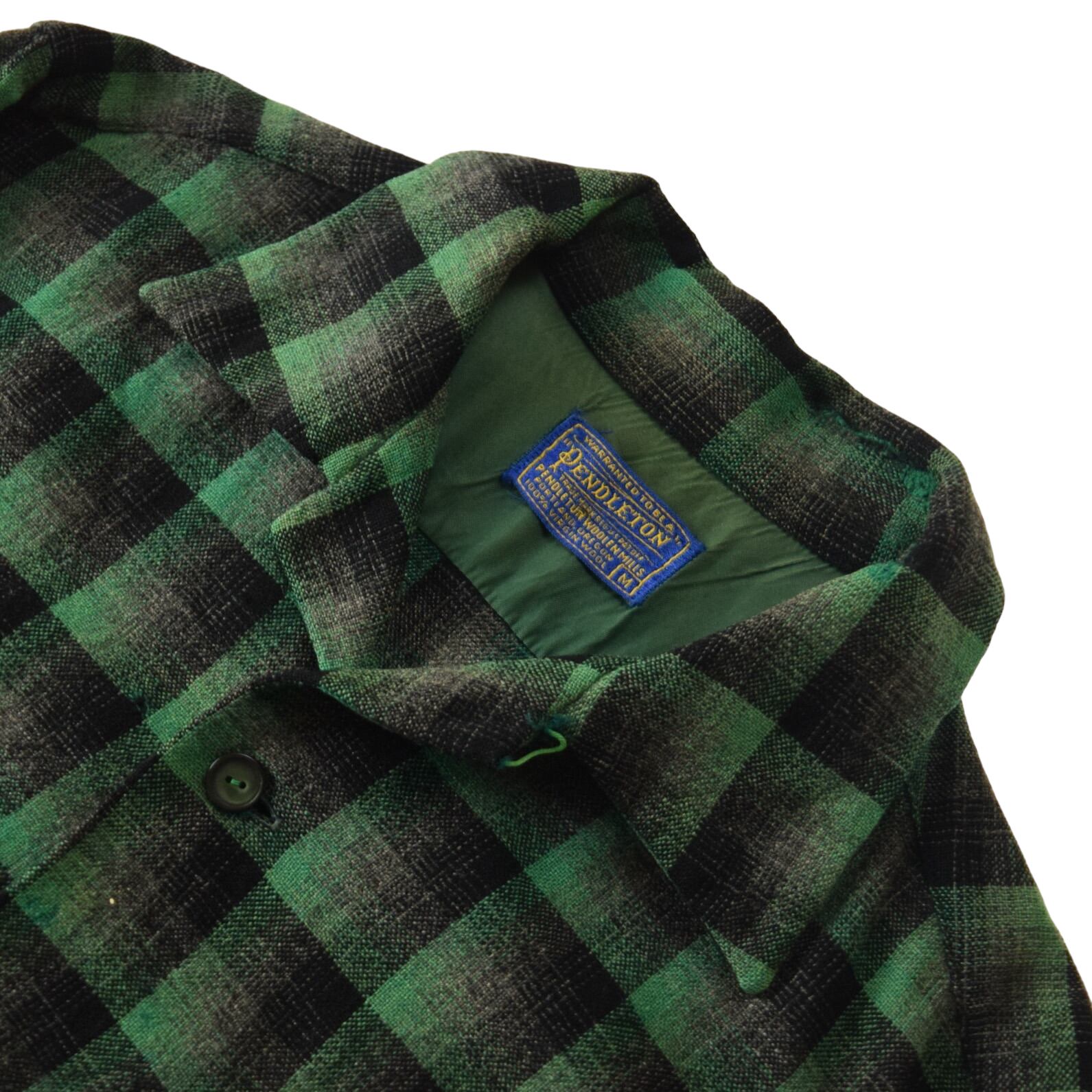1950's "PENDLETON" Vintage Ombre Check Open Collar Wool Shirt / 50年代 ペンドルトン ヴィンテージ オンブレチェック 開襟 ウールシャツ シャドーチェック オープンカラー 50s ビンテージ
