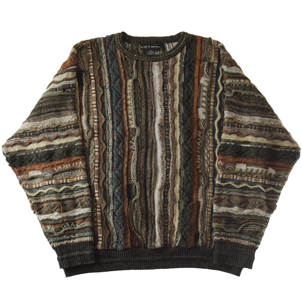 1990's "croft & barrow" Vintage 3D Knit Design Sweater XXL Made In Bulgaria / 90年代 ヴィンテージ 3Dニット 総柄セーター ブルガリア製 柄ニット ビンテージ 90s