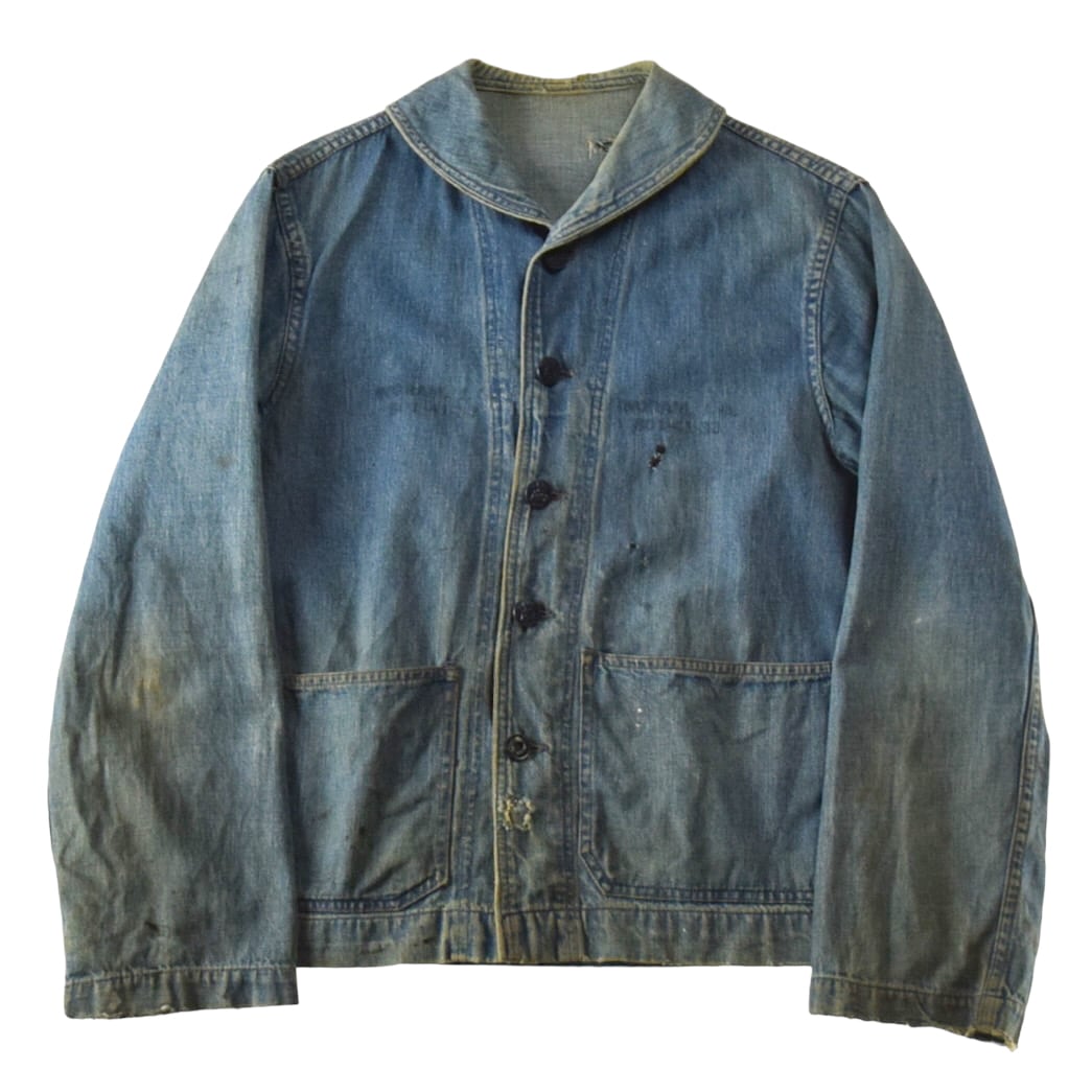 1940's "U.S.NAVY" Vintage Shawl Collar Denim Coverall Change Button / 40年代 アメリカ海軍 ヴィンテージ ショールカラー デニムジャケット チェンジボタン カバーオール 40s ビンテージ USN