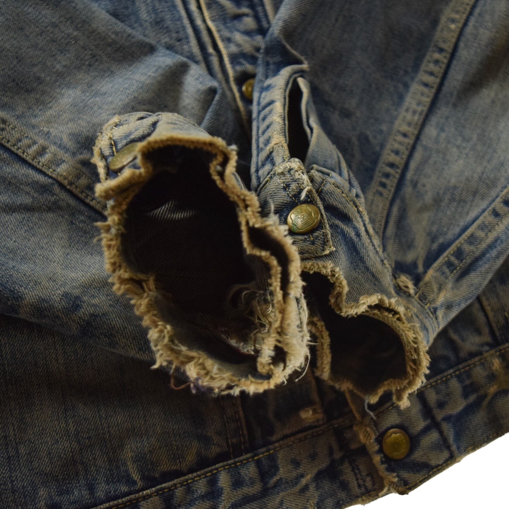 着用に支障はございませんが、全体的に経年による色の濃淡、ダメージ、細かいホツレや擦れ等見られます。また、元々キルティングのライナーが付いているモデルですが、前オーナーにより切り取られています。