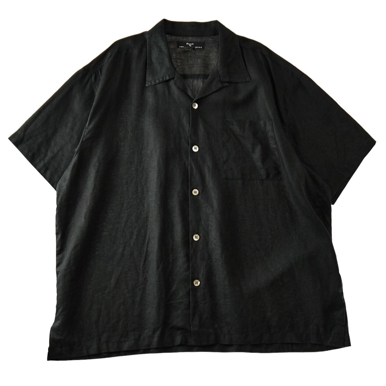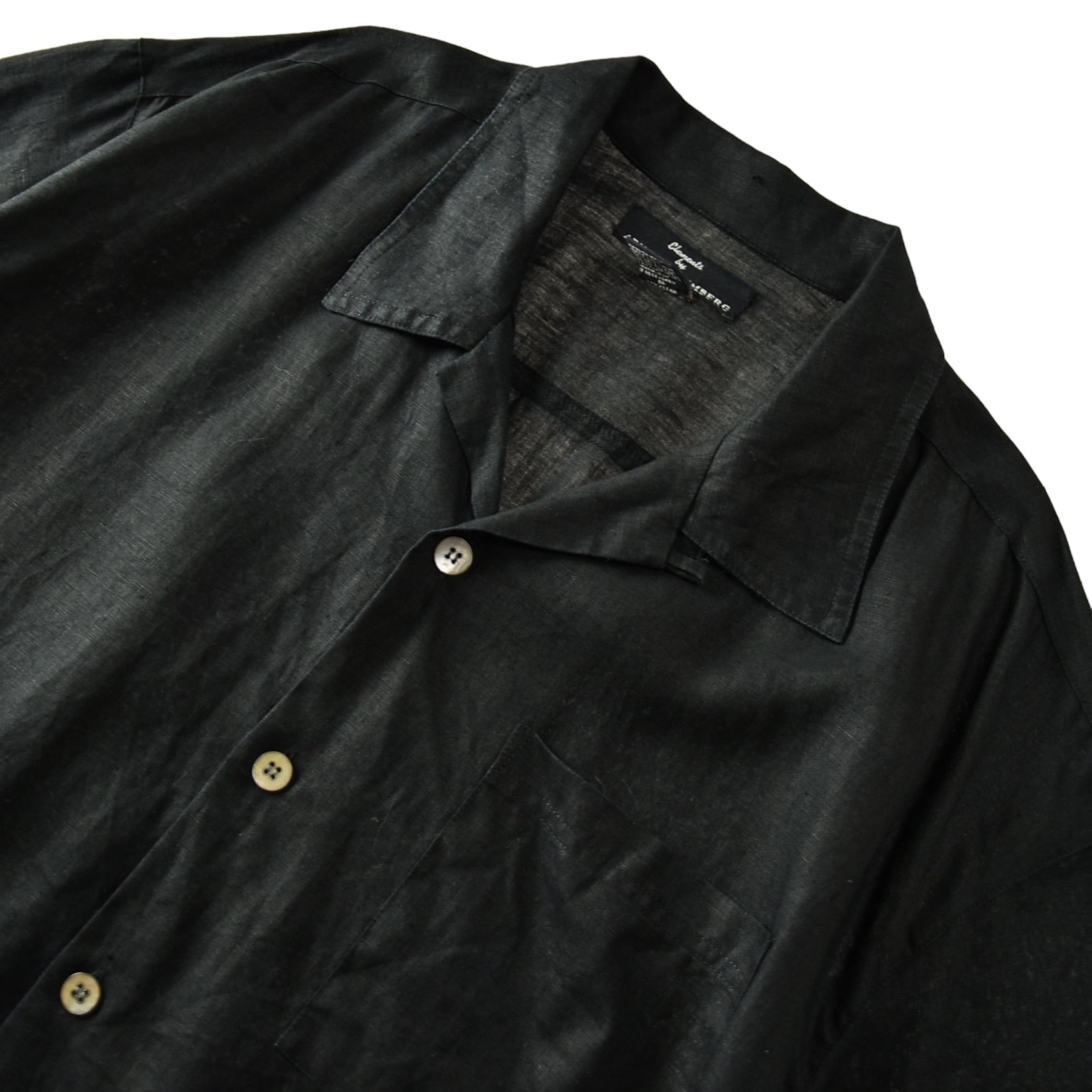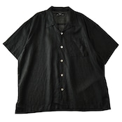 00's Open Collar Black Linen Shirt / オープンカラー ブラックリネンシャツ シェルボタン 開襟シャツ オープンカラーシャツ