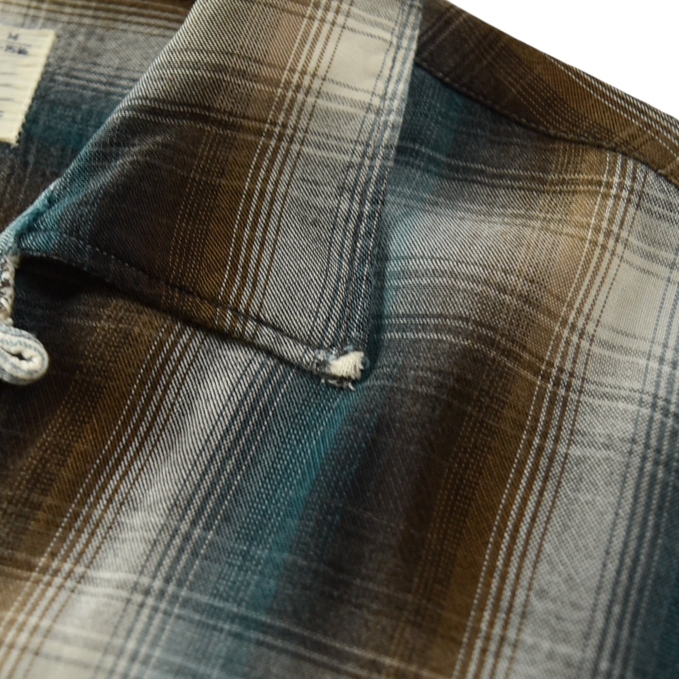 1960's "TOWNCRAFT" Vintage Open Collar Ombre Pattern Rayon Shirt / 60年代 タウンクラフト ヴィンテージ オンブレチェック レーヨンシャツ 60s ビンテージ シャドーチェック オープンカラー 開襟シャツ 舟タグ