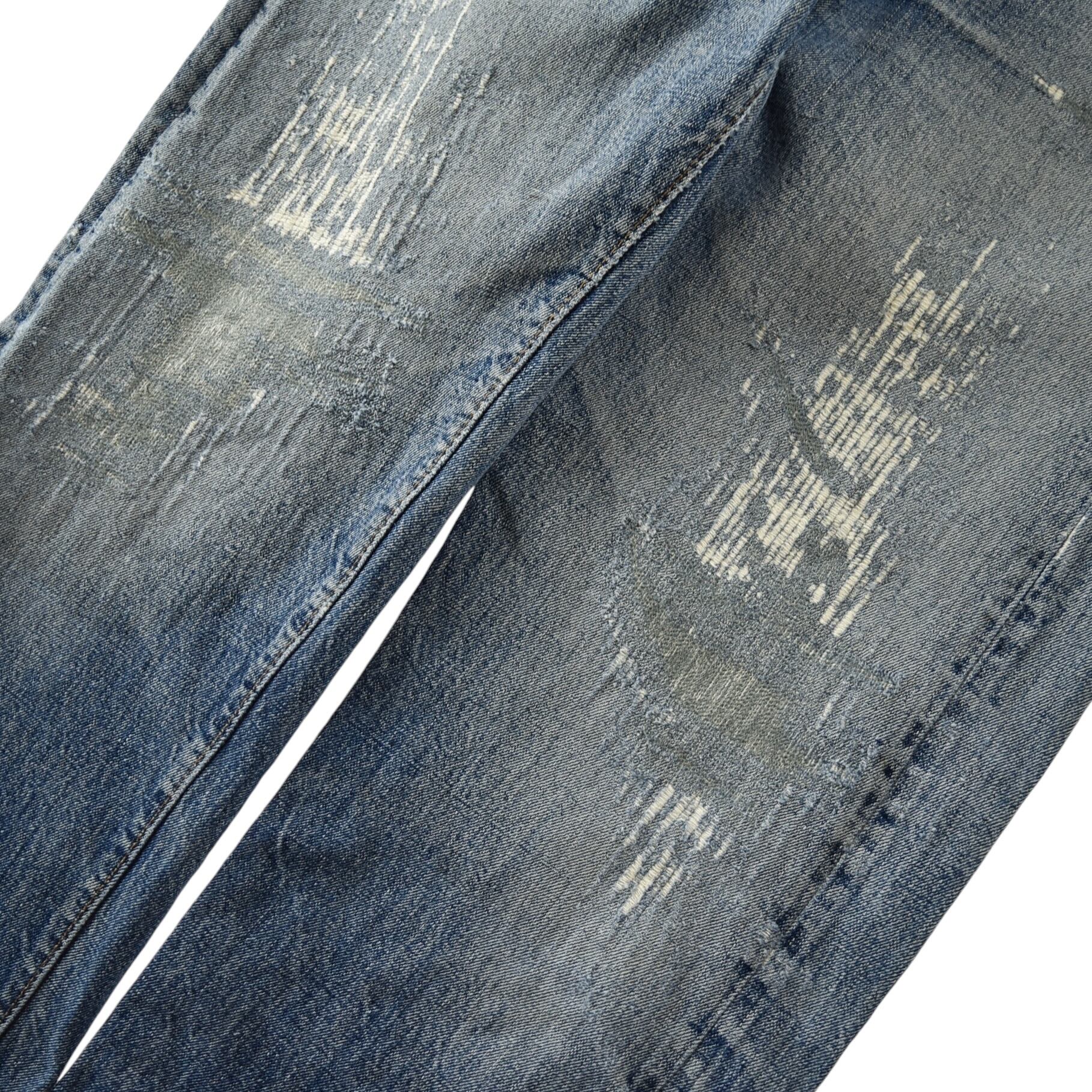 着用に支障はございませんが、全体的にビンテージデニム特有のリペアやダメージ、微細なほつれ、色の濃淡、薄汚れ等見られます。画像でご判断ください。