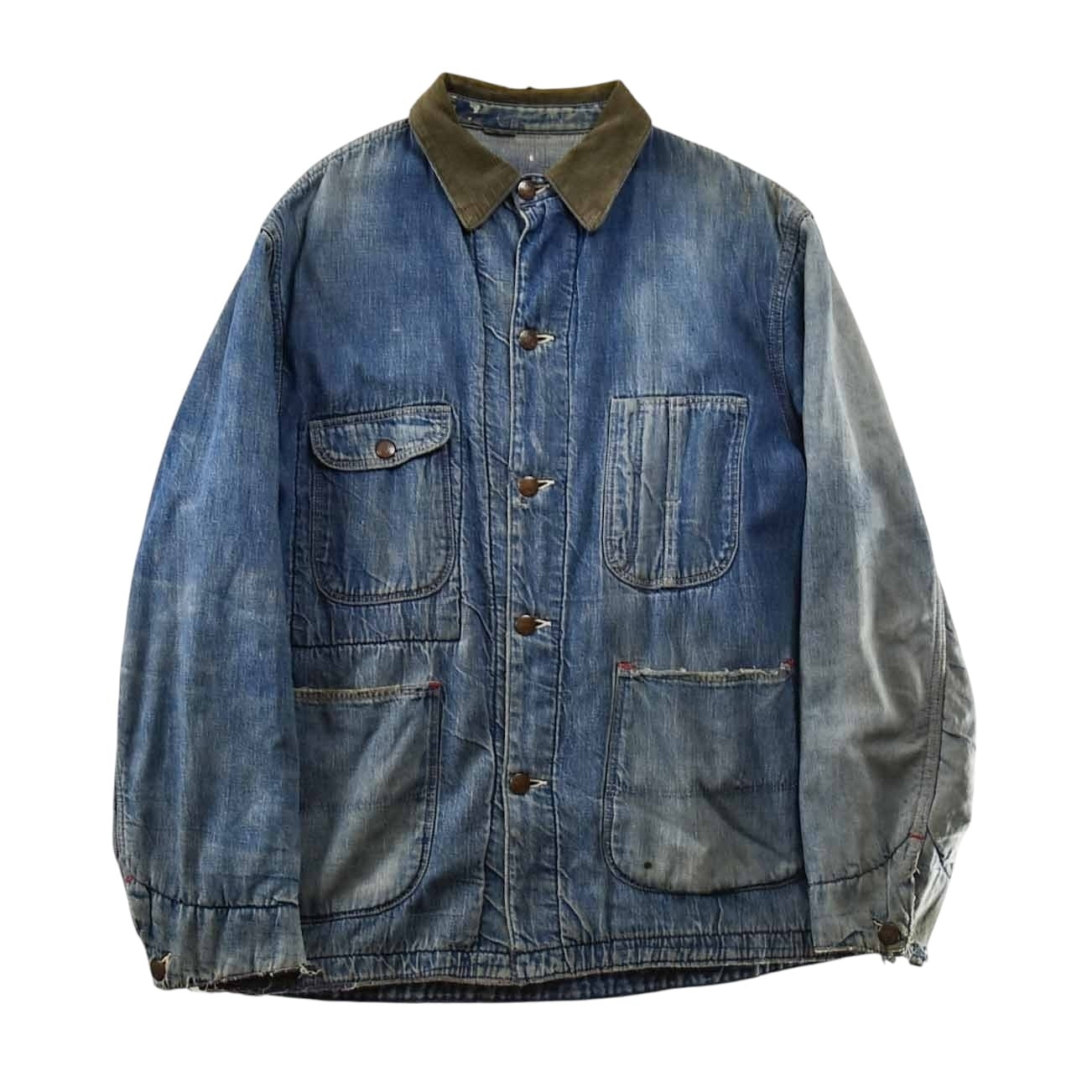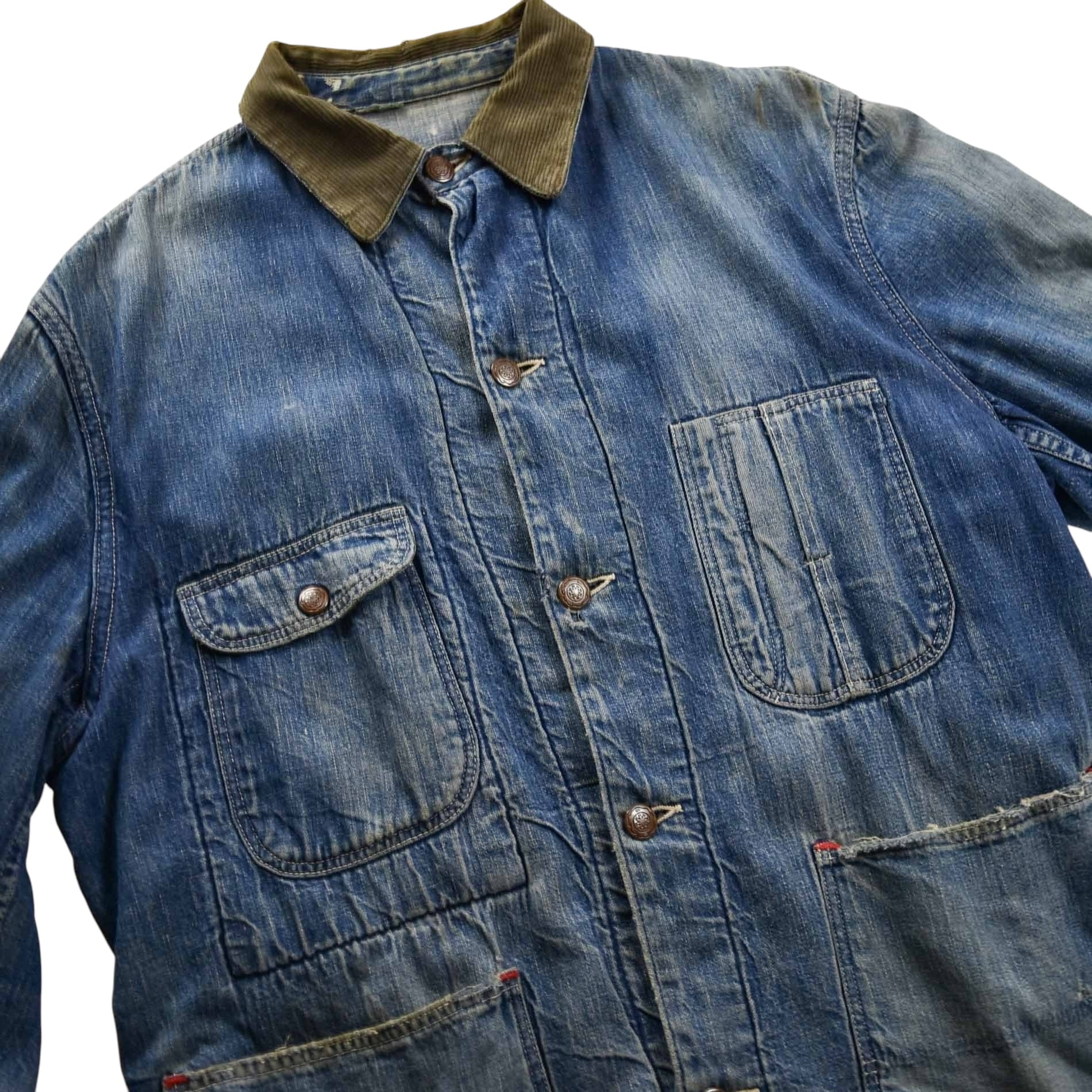 1960's "UNKNOWN" Vintage Denim Coverall Blanket Lining / 60年代 ヴィンテージ デニムカバーオール ブランケットライナー 60s ビンテージ 雰囲気系 ボロ 襤褸